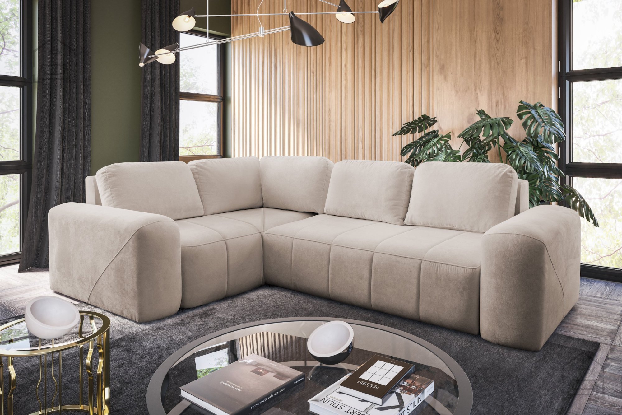 Die Eckgarnitur Novelo II der Marke Brattex vereint modernes Design, praktische Funktionen und den Komfort, den man sich von einem hochwertigen Möbelstück erwartet. Mit ihren Außenmaßen von 257x185x83 cm bietet sie großzügigen Sitzplatz und passt gleichzeitig auch gut in kleinere Wohnzimmer. Gefertigt wird das Modell in Polen, bekannt für präzise Verarbeitung und hochwertige Materialien. Durch ihren modernen Stil und die durchdachte Funktionalität eignet sich diese Eckgarnitur sowohl für den täglichen Gebrauch als auch zum gelegentlichen Schlafen.
