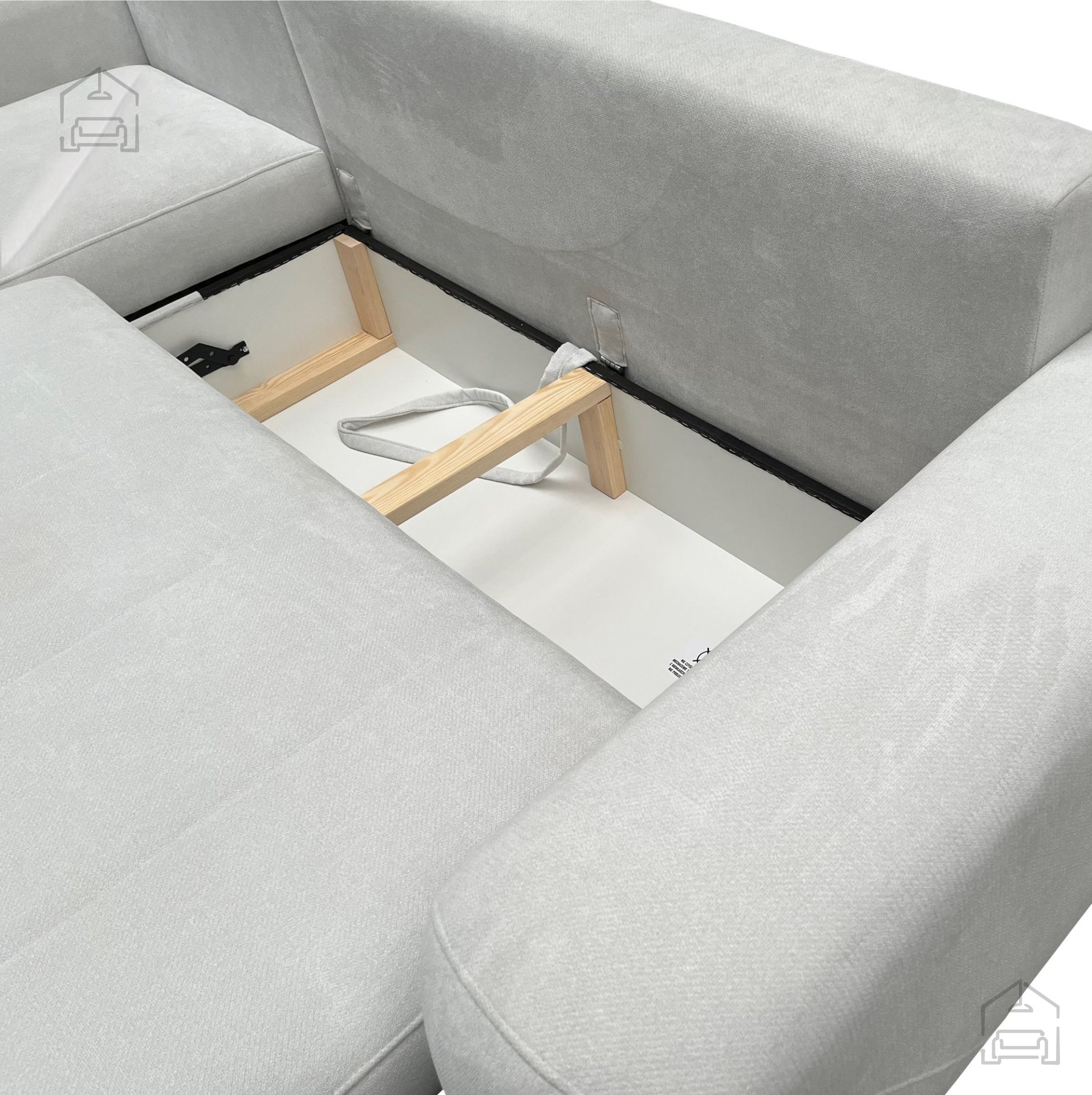 Das Gestell besteht aus einem Holzrahmen in Kombination mit Spanplatte, was Stabilität und Langlebigkeit garantiert. In der Sitzfläche kommt ein Wellenfeder-System zum Einsatz, das zusammen mit dem T-30-Schaumstoff (10 cm stark) optimalen Halt und angenehmen Sitzkomfort bietet. Der elastische Schaum sorgt dafür, dass die Form auch nach längerer Nutzung bestens erhalten bleibt. Durch die Kombination aus hochwertigem Holz, Federung und Schaum entsteht ein Sitzgefühl, das sowohl weich als auch stabil ist und die Wirbelsäule ideal unterstützt.