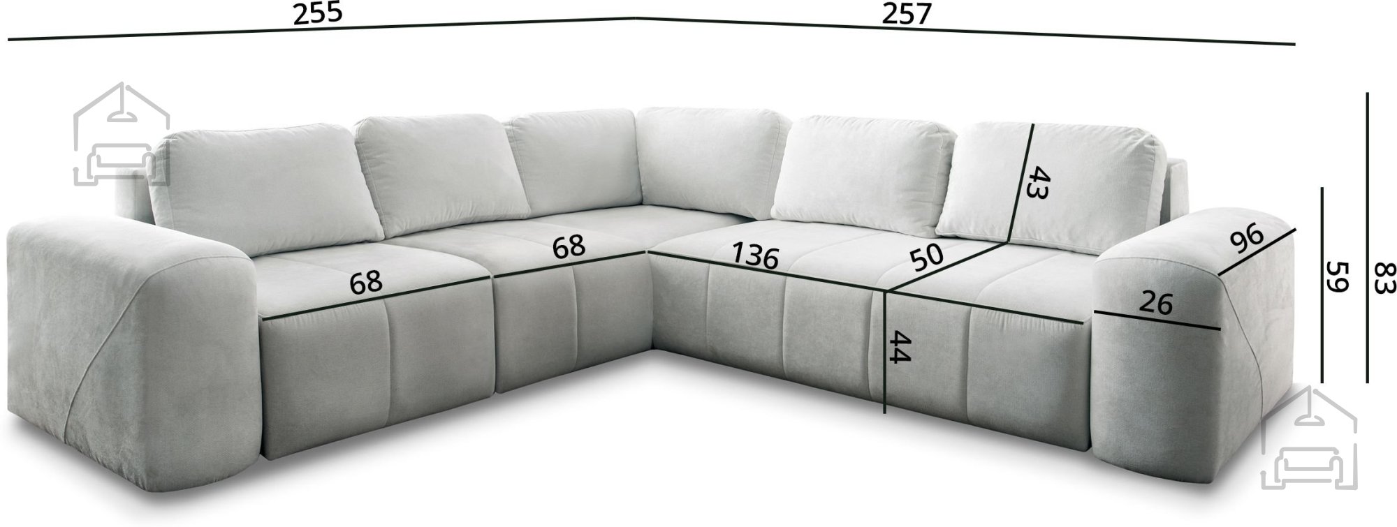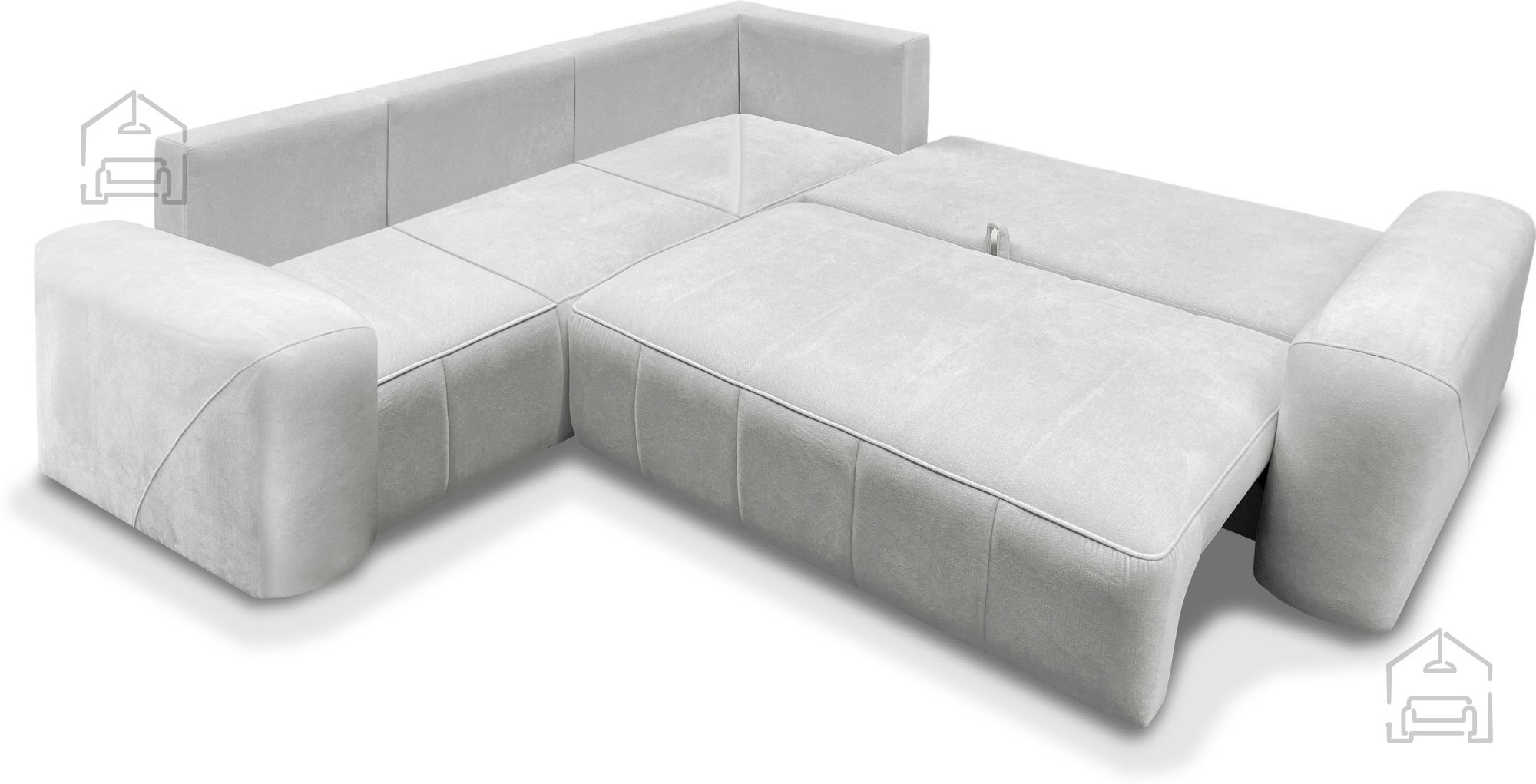 Das Modell Novelo III ist mit einem zuverlässigen Euro-Mechanismus ausgestattet, der ein einfaches und schnelles Ausziehen zum Bett ermöglicht. Im ausgezogenen Zustand entsteht eine bequeme Liegefläche von 205x125 cm, ideal für zwei Personen. Zusätzlich verfügt die Garnitur über einen Bettkasten, in dem Decken, Kissen oder Bettwäsche ordentlich verstaut werden können – eine praktische Lösung für mehr Ordnung im Raum, ohne auf ansprechendes Design zu verzichten.