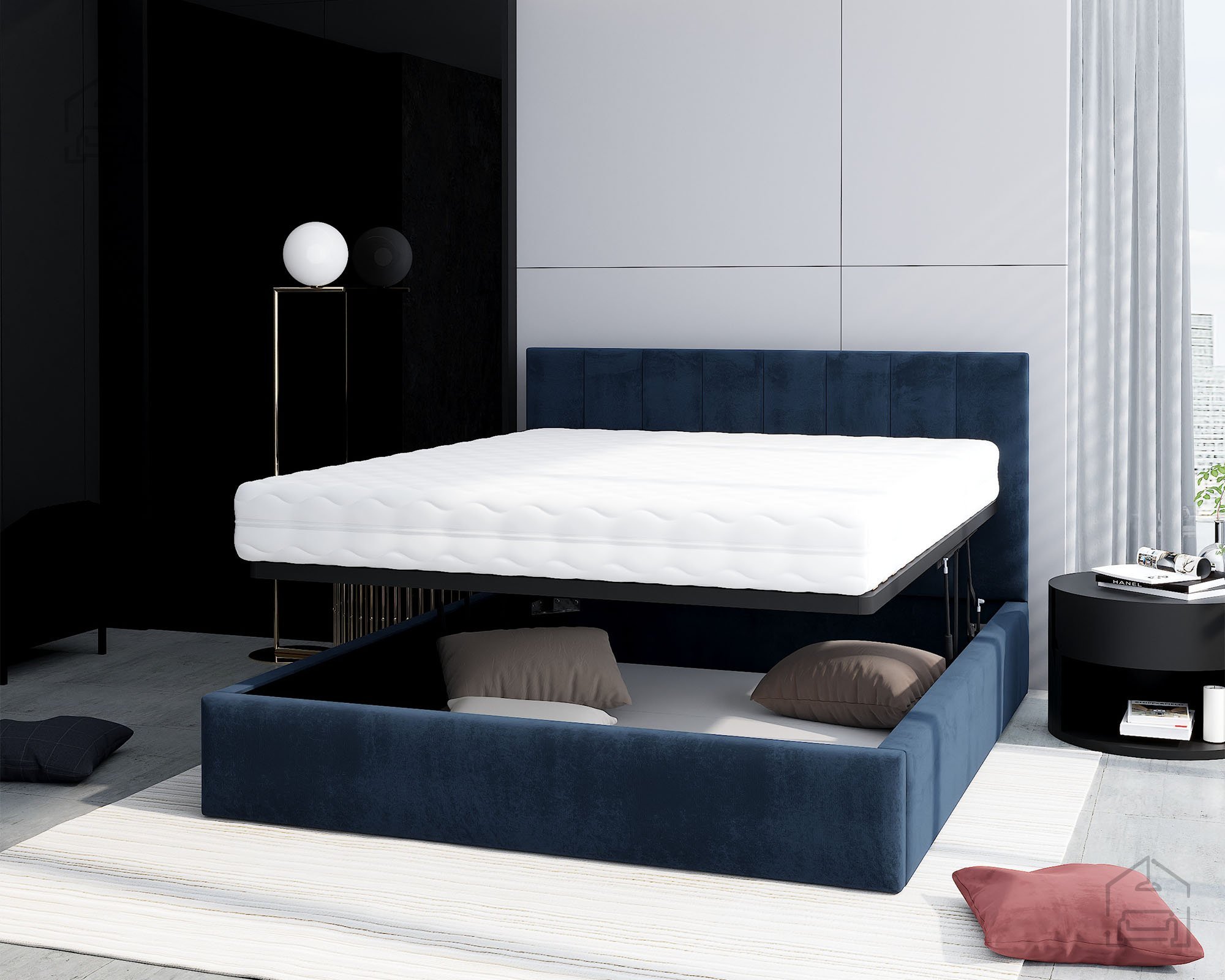 Das Bett mit Hebemechanismus Justin wurde für Menschen entwickelt, die Komfort, Funktionalität und ein ansprechendes Design in einem Möbelstück vereinen möchten. Es handelt sich um ein gepolstertes Bett mit einer stabilen Konstruktion aus Holz und Spanplatte, die für Langlebigkeit und festen Halt sorgt. Der integrierte Holz-Hebemechanismus ermöglicht einen einfachen Zugang zum großzügigen Stauraum unter der Liegefläche – ideal für kleinere Schlafzimmer oder Garçonnièren, wo jeder zusätzliche Platz zählt.