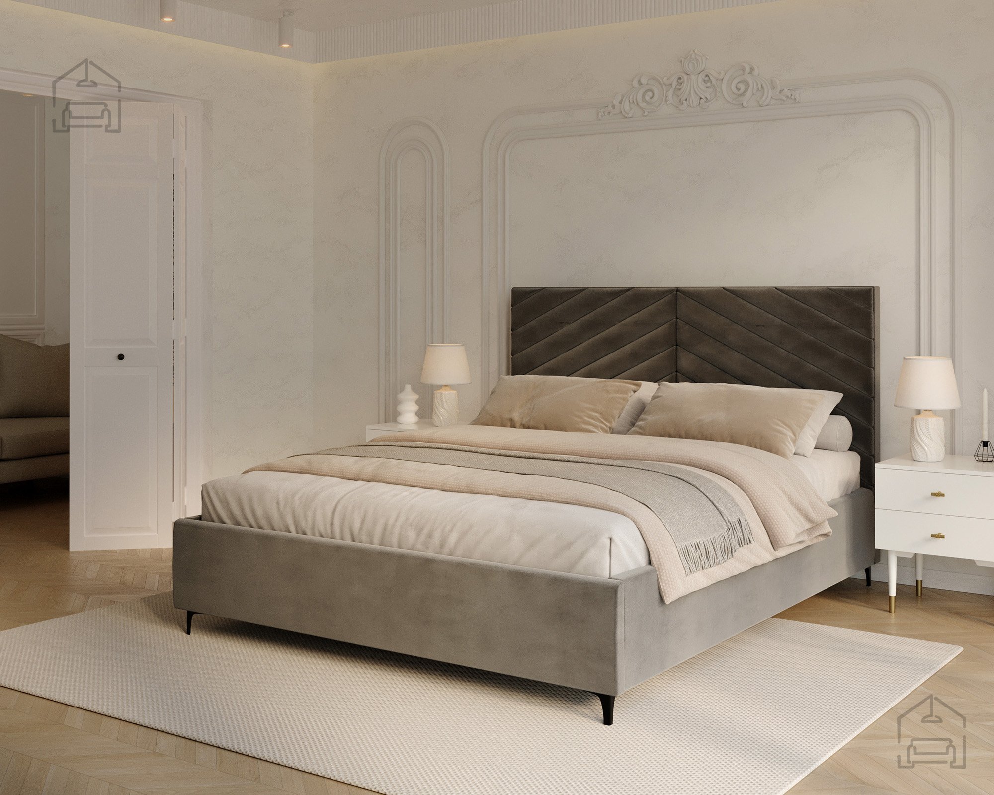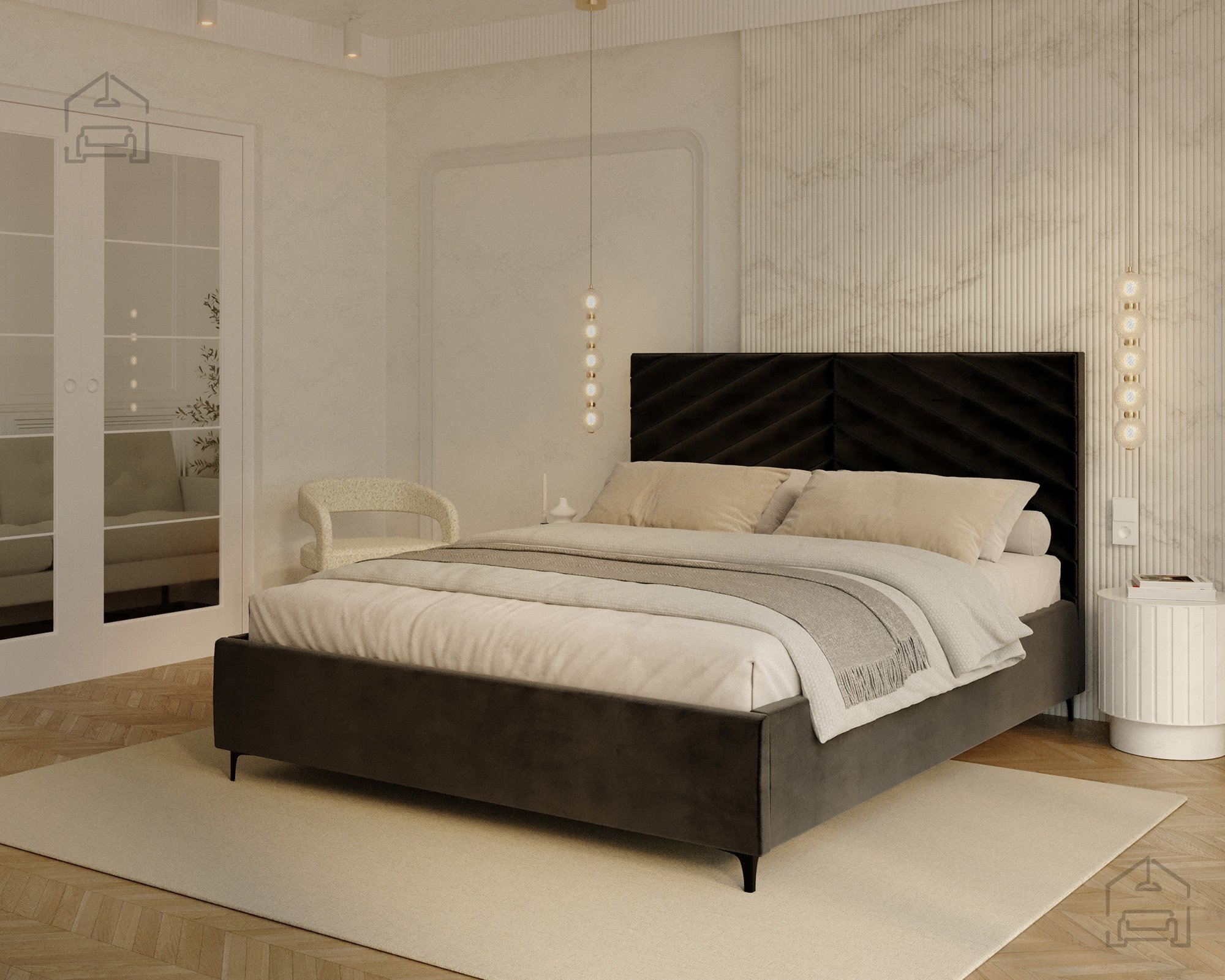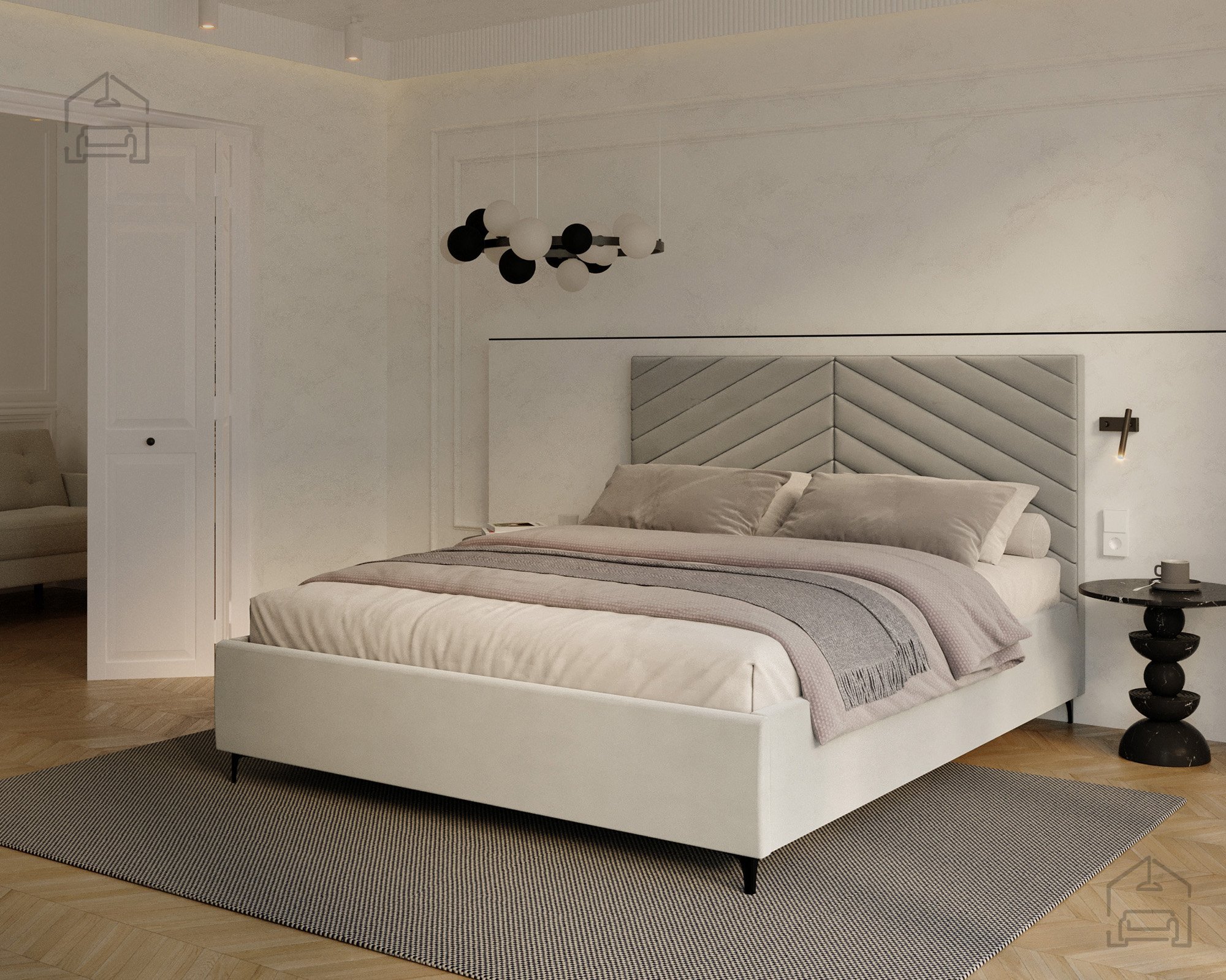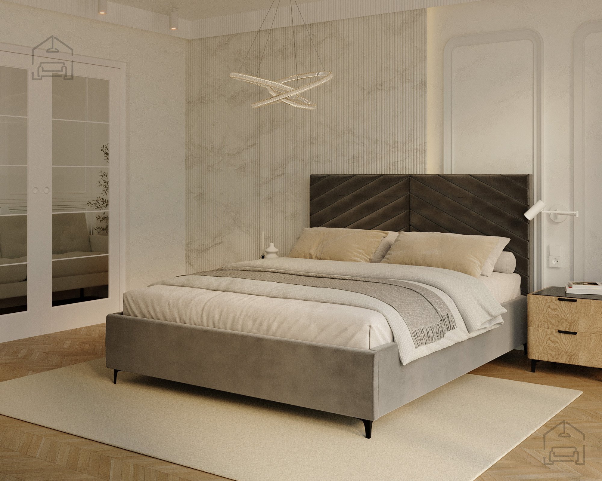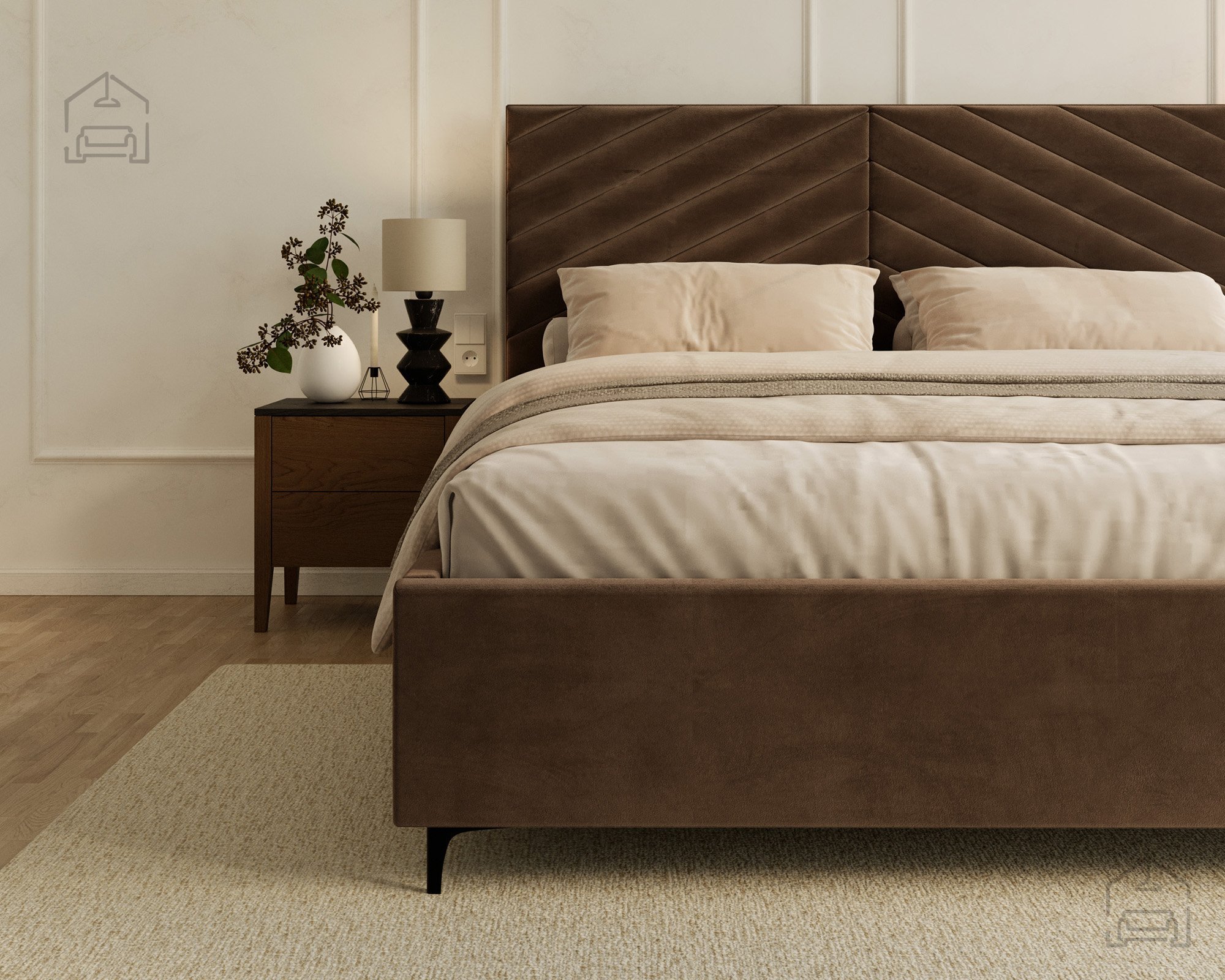 Das Modell Elegante richtet sich an alle, die eine gelungene Verbindung von modernem Design und Alltagstauglichkeit schätzen. Seine Form macht es zum Mittelpunkt des Schlafzimmers, ohne wuchtig zu wirken. Die weichen Linien des Kopfteils und die präzise gearbeiteten Nähte vermitteln ein Gefühl von Luxus und zeigen die sorgfältige Verarbeitung der Materialien. Das Bett passt hervorragend zu modernen Nachtkästchen und minimalistischen Accessoires, fügt sich dank seiner neutralen Eleganz aber ebenso gut in klassisch eingerichtete Räume ein.