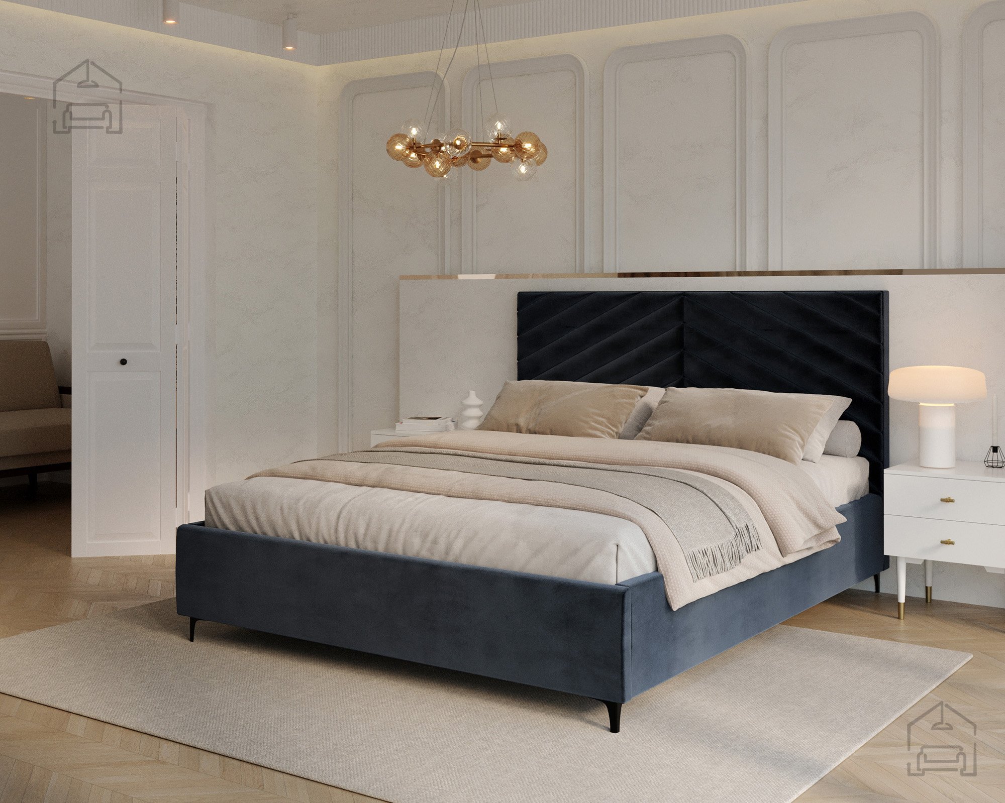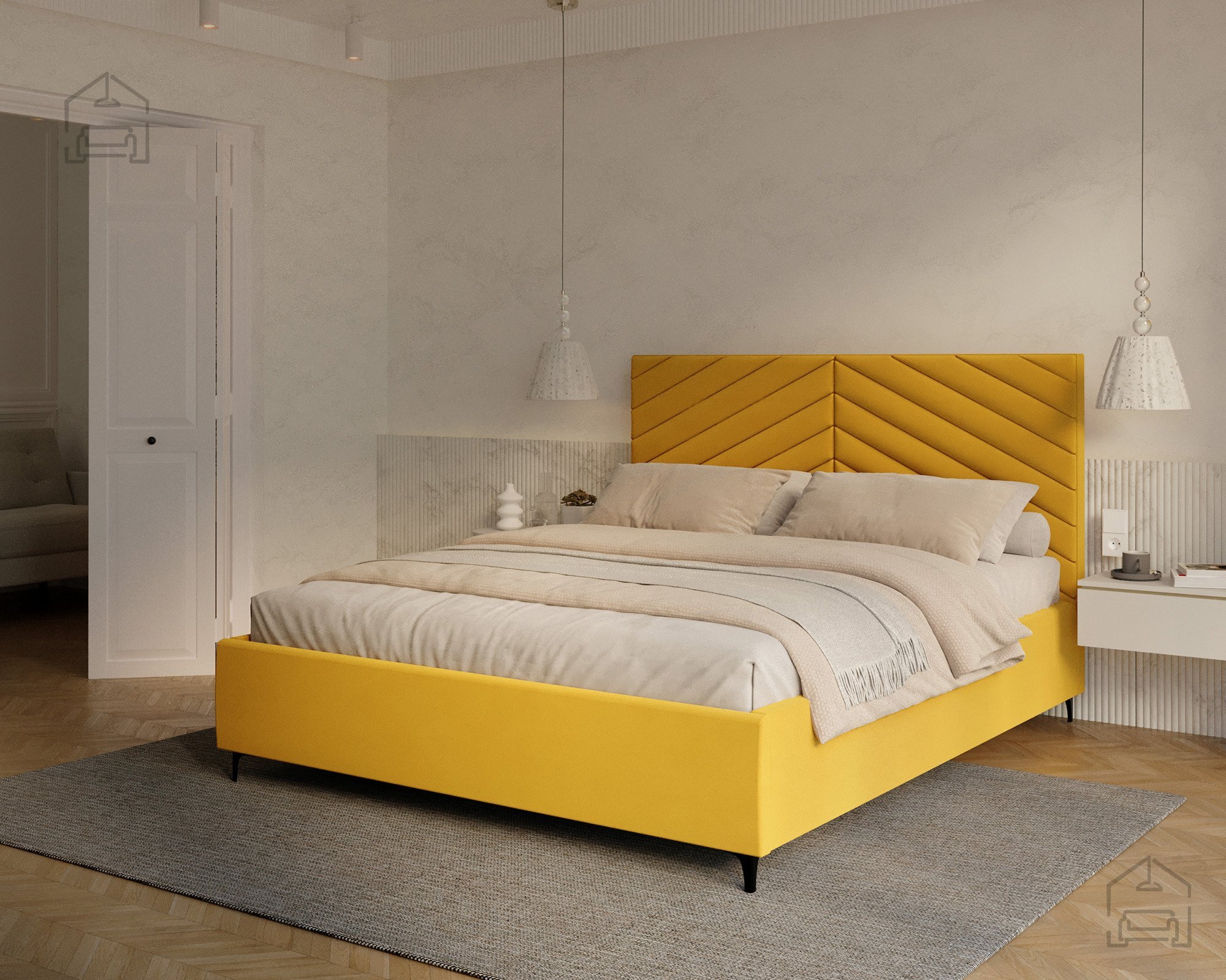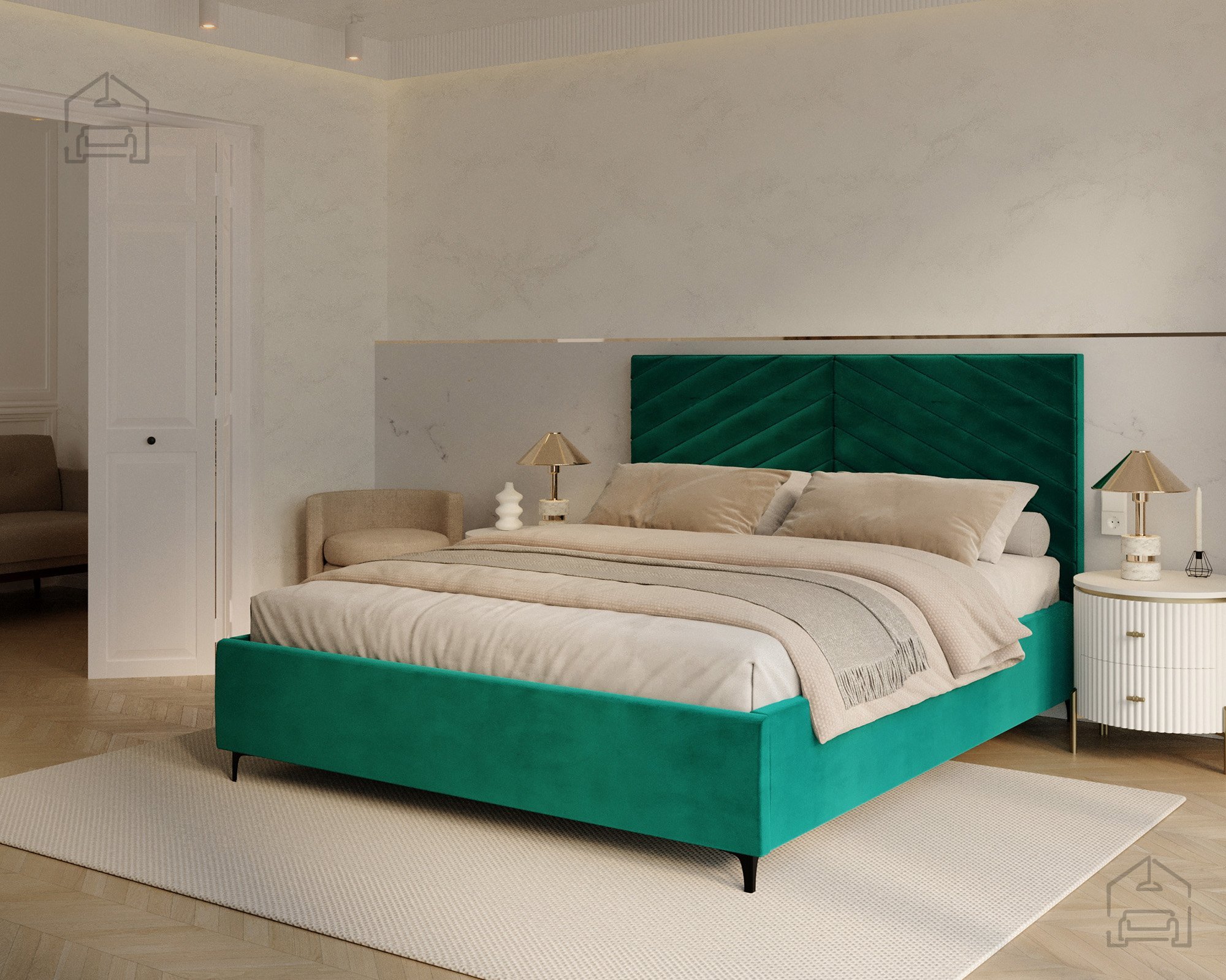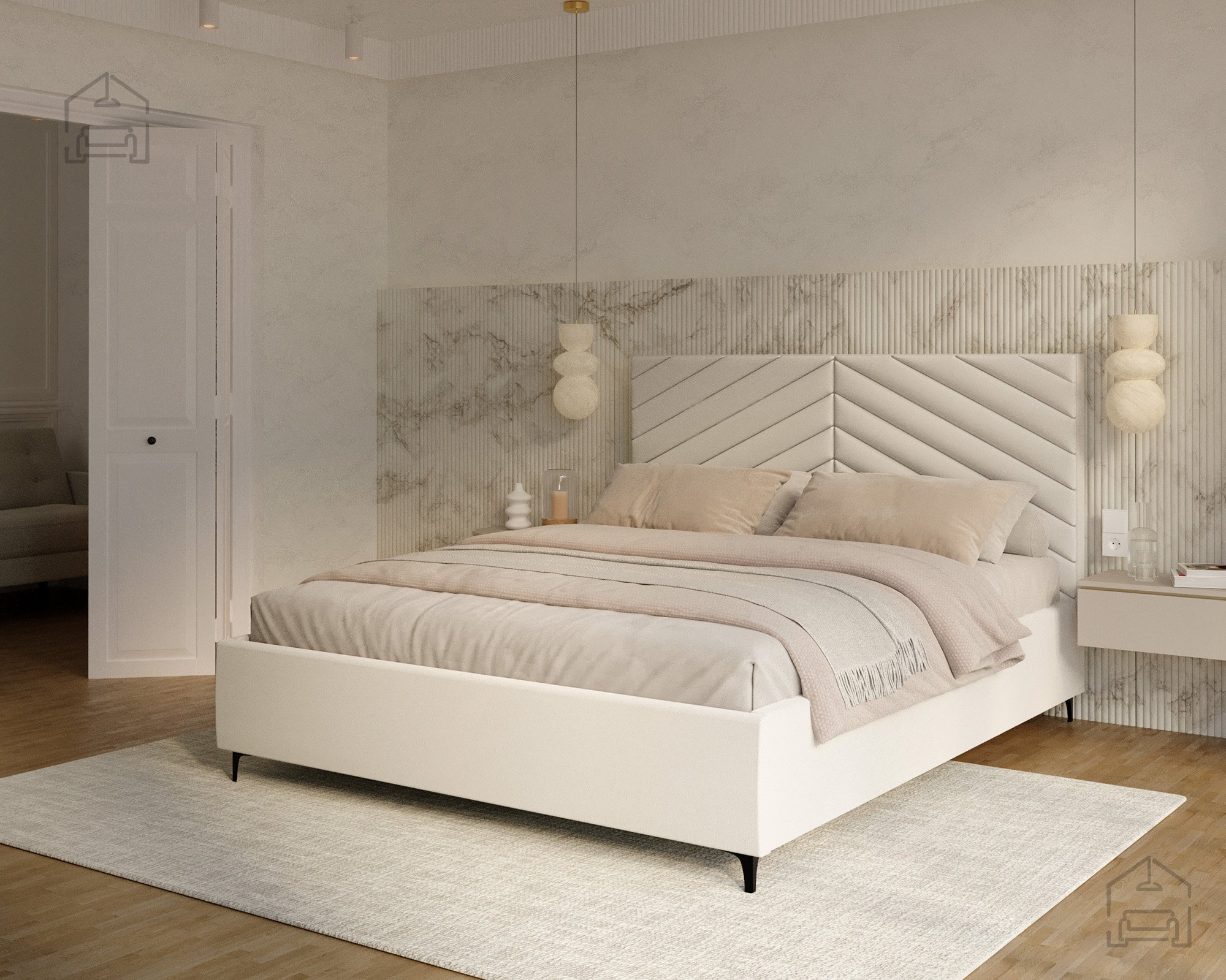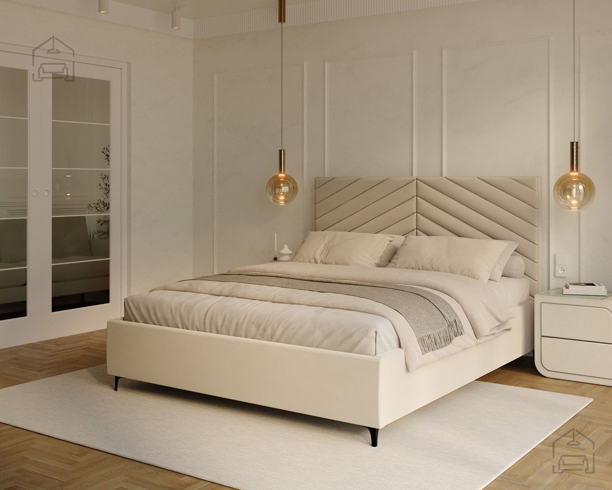 Das Modell Elegante richtet sich an alle, die eine gelungene Verbindung von modernem Design und Alltagstauglichkeit schätzen. Seine Form macht es zum Mittelpunkt des Schlafzimmers, ohne wuchtig zu wirken. Die weichen Linien des Kopfteils und die präzise gearbeiteten Nähte vermitteln ein Gefühl von Luxus und zeigen die sorgfältige Verarbeitung der Materialien. Das Bett passt hervorragend zu modernen Nachtkästchen und minimalistischen Accessoires, fügt sich dank seiner neutralen Eleganz aber ebenso gut in klassisch eingerichtete Räume ein.