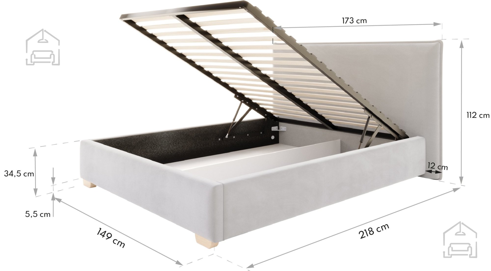 Das hochklappbare Bett Perfetto stammt vom polnischen Hersteller Postelje FDM und vereint Funktionalität, Eleganz und Komfort in einem Möbelstück. Sein durchdachtes Design ermöglicht eine praktische Aufbewahrung der Bettwäsche, ohne dass dabei der stilvolle Look des Schlafzimmers verloren geht. Gefertigt aus hochwertigen Materialien – einer Kombination aus T-25-Schaumstoff, Holz und Spanplatte – und bezogen mit dem Stoff Paris Purple, überzeugt das Bett durch eine angenehme Haptik und ein harmonisches Erscheinungsbild. Die Liegefläche misst 140x200 cm, die Höhe der Liegefläche beträgt 34,5 cm. Die gesamte Konstruktion (173x218x112 cm) ist stabil, langlebig und dank des integrierten Holzhebemechanismus einfach zu bedienen.