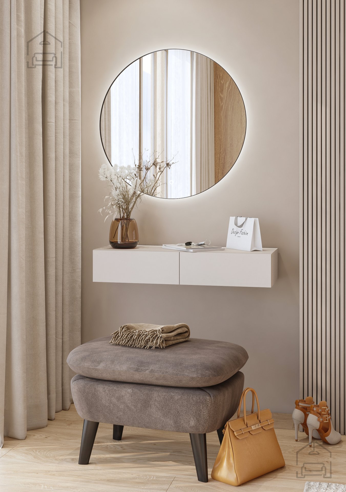 Der Wand-Schminktisch mit Spiegel Jukon S ist mehr als nur ein Möbelstück – er ist Ihr persönlicher Bereich zum Entspannen, Pflegen und Schminken. Mit seiner harmonischen Kombination aus Funktionalität, Ästhetik und hochwertigen Materialien ist er die ideale Lösung für moderne Wohnräume, in denen sich Zweckmäßigkeit und sanfte Eleganz in Kaschmir perfekt ergänzen.