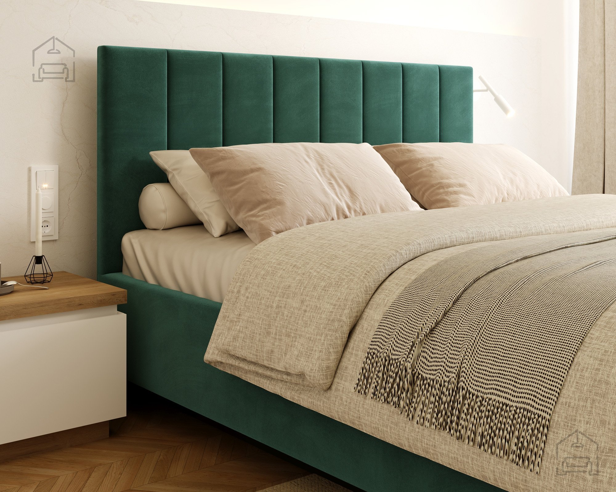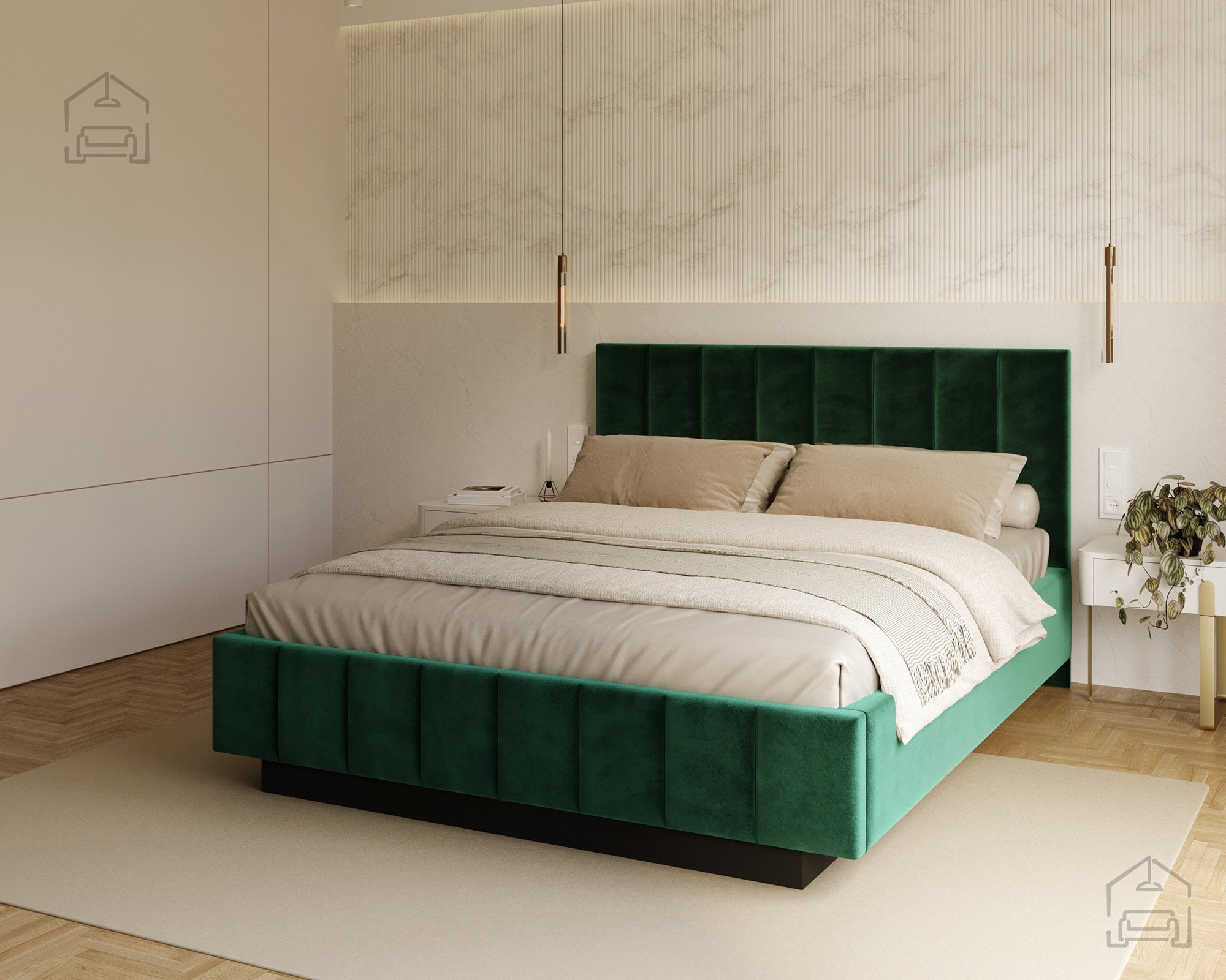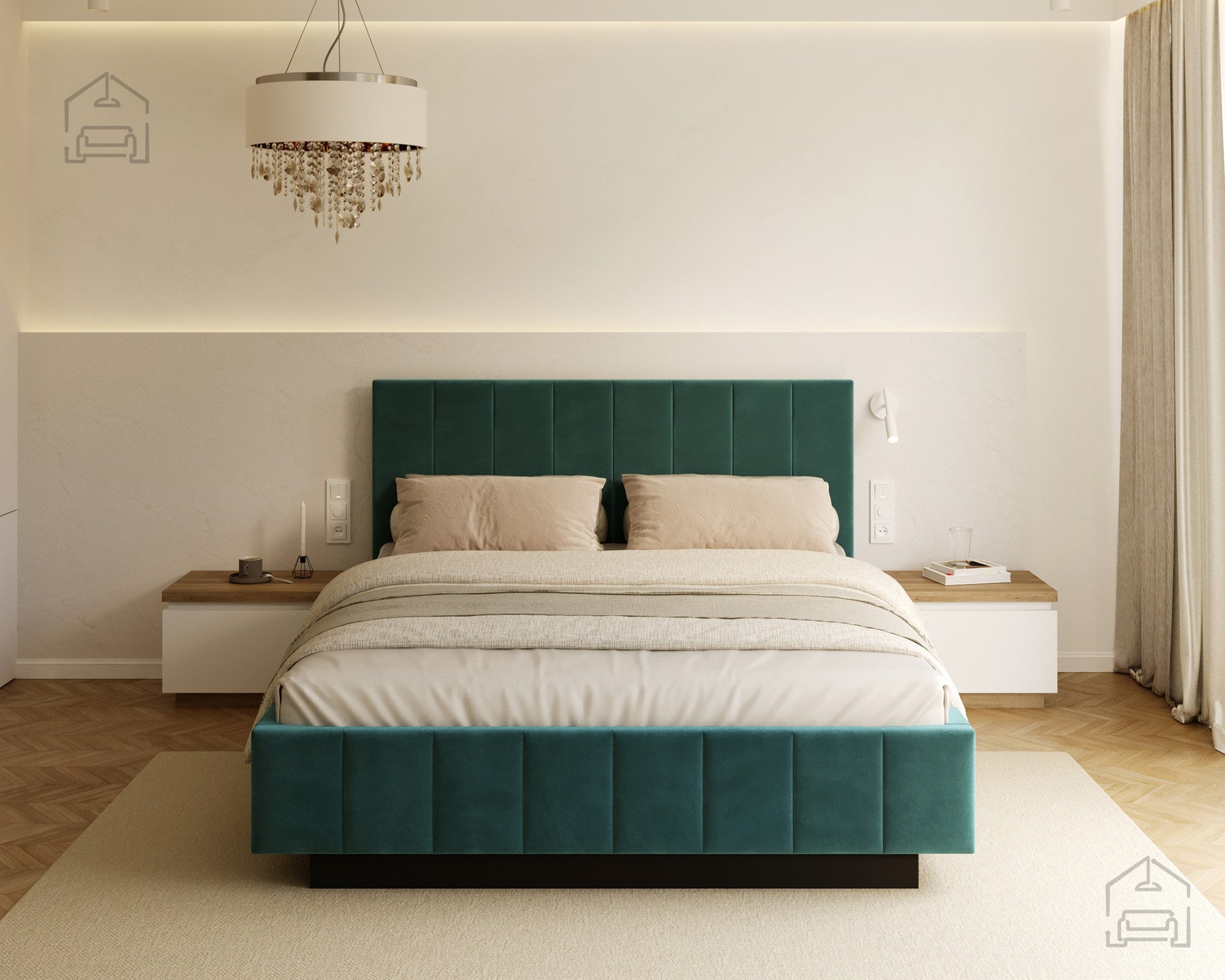 Das Modell Levito überzeugt sowohl durch seine ansprechende Optik als auch durch seine praktische Nutzung. Der gepolsterte Rahmen ist in mehreren Farbvarianten erhältlich, das auf dem Foto gezeigte Modell ist mit dem Stoff Trinity Turquoise bezogen. Dank seines klaren Designs passt das Bett ideal in moderne, minimalistische und stilvolle Interieurs, in denen auf klare Linien und ein offenes Raumgefühl Wert gelegt wird.