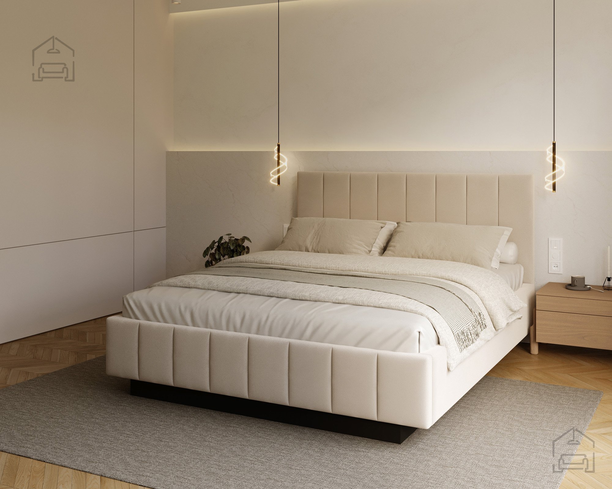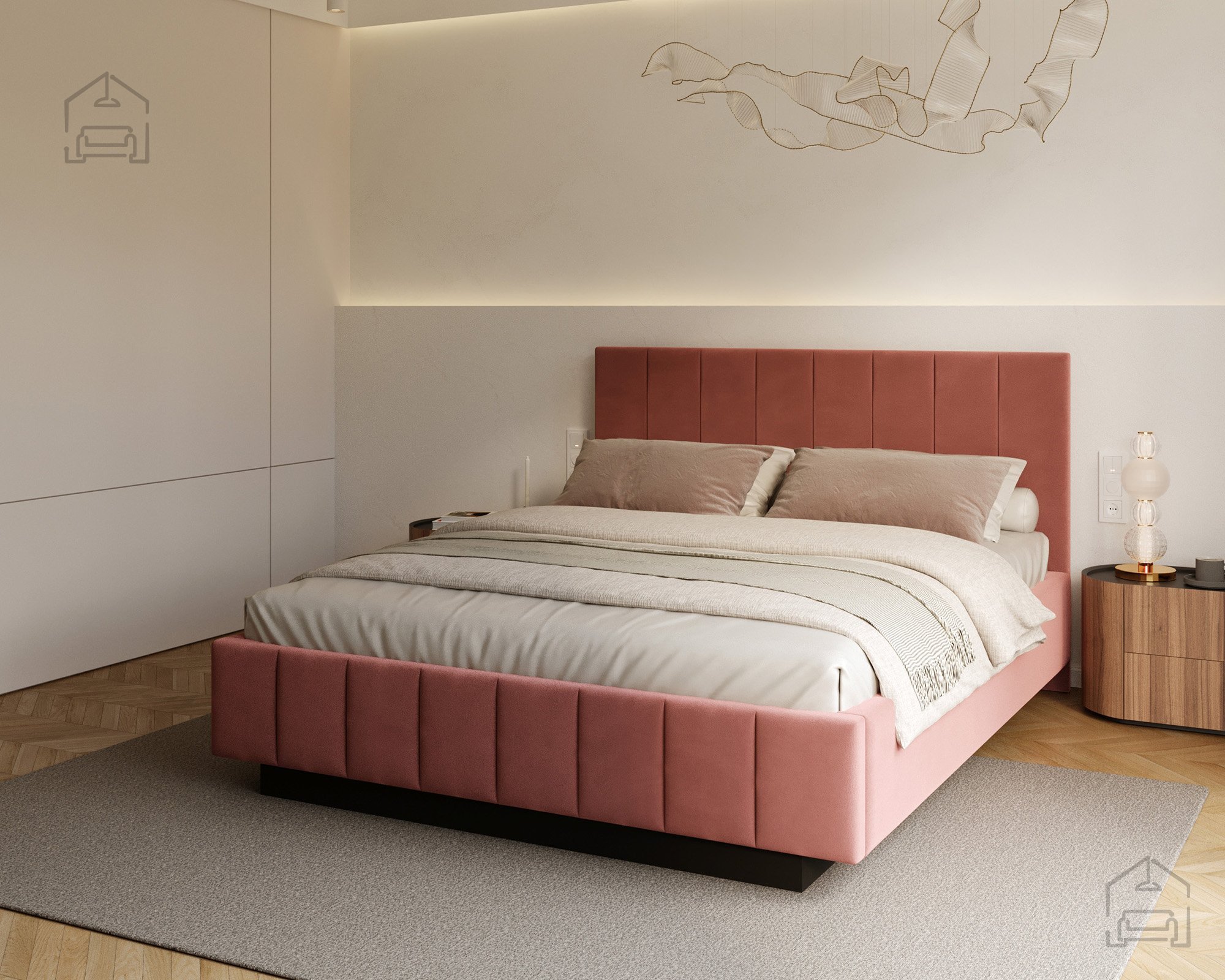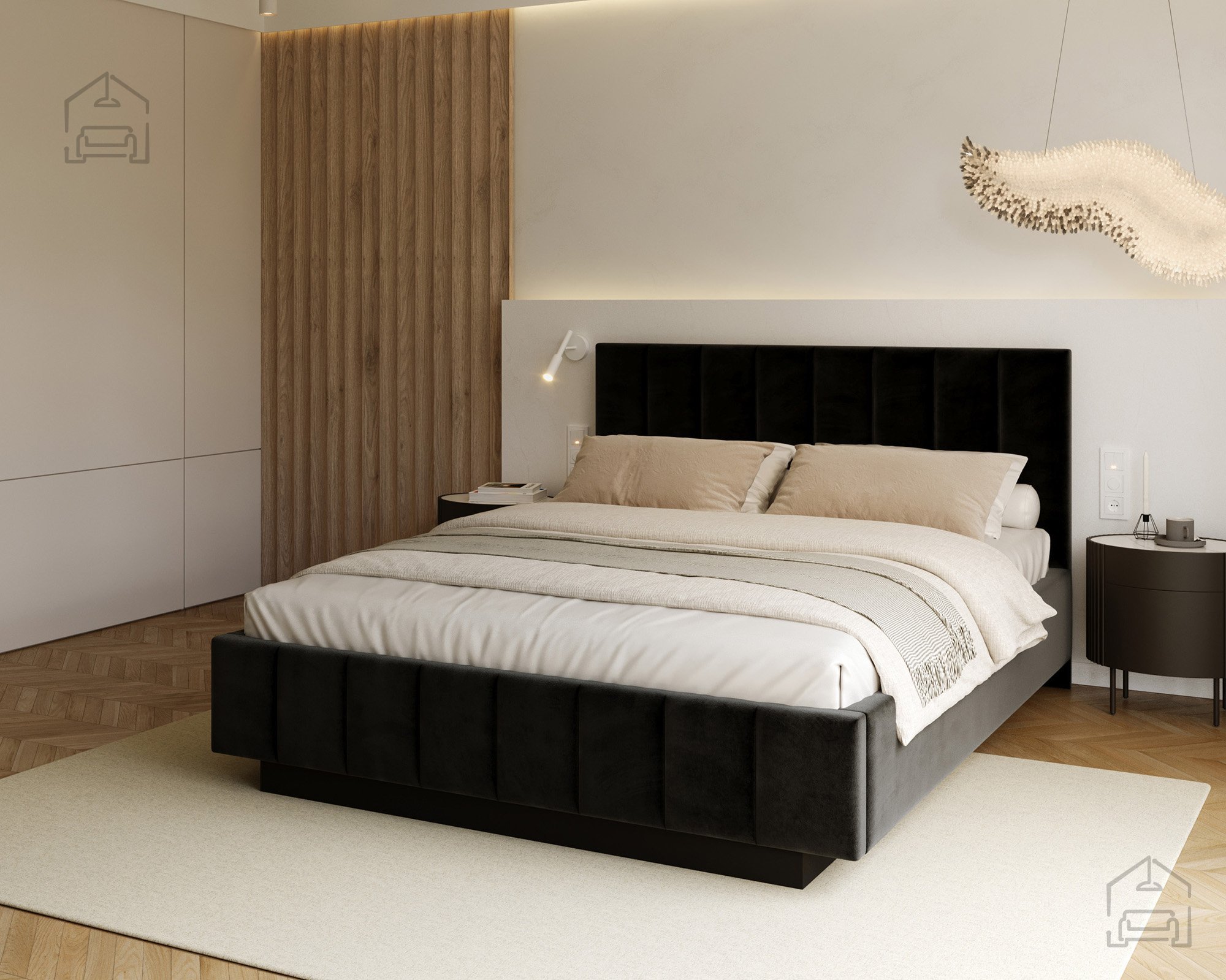 Das Bett ist von allen Seiten gut zugänglich, was den Alltag besonders angenehm macht. Im Vergleich zu klassischen Modellen mit geschlossener Basis wirkt Levito deutlich luftiger und moderner – perfekt sowohl für kleinere Schlafzimmer als auch für großzügige Räume, in denen Design und Offenheit betont werden sollen.