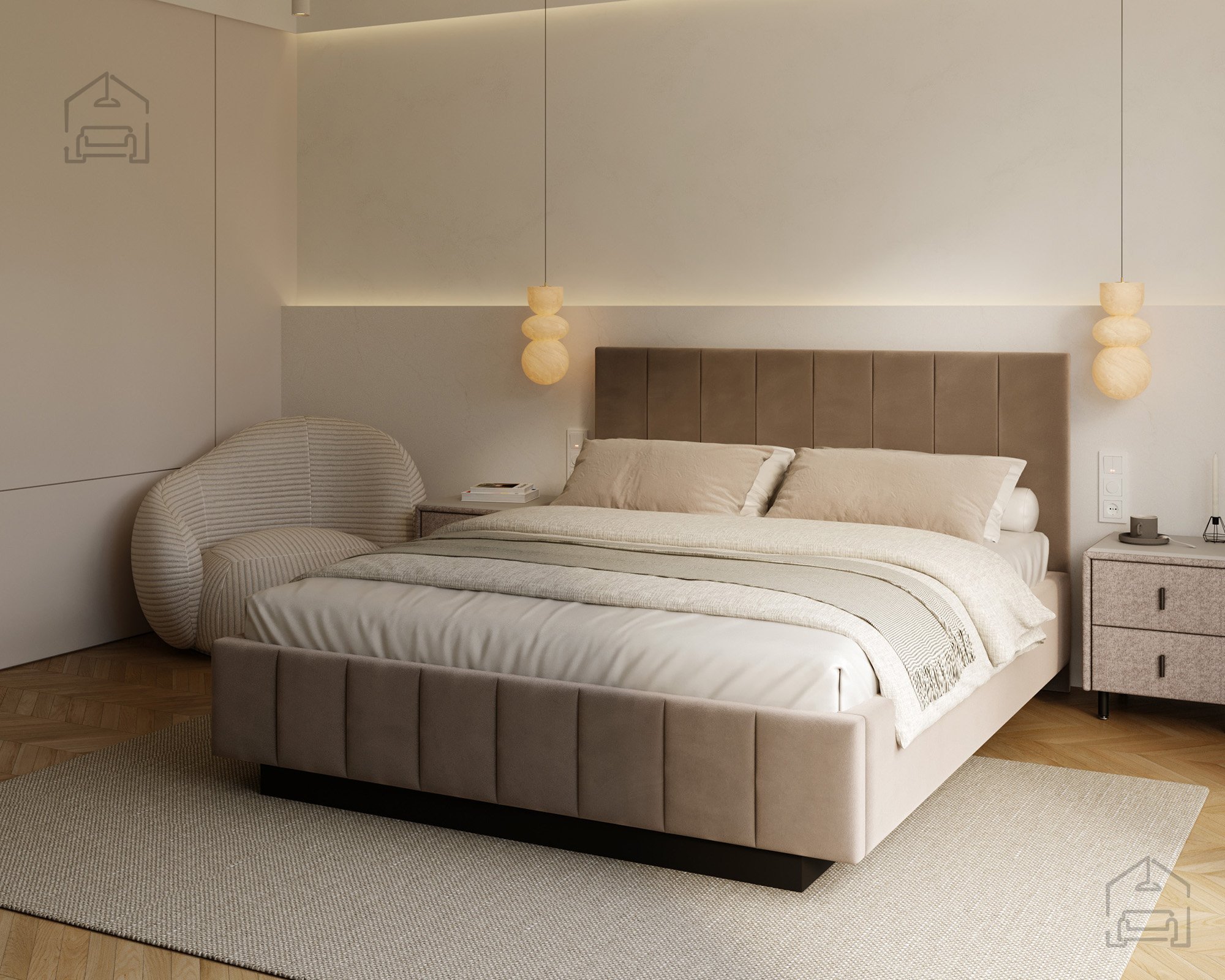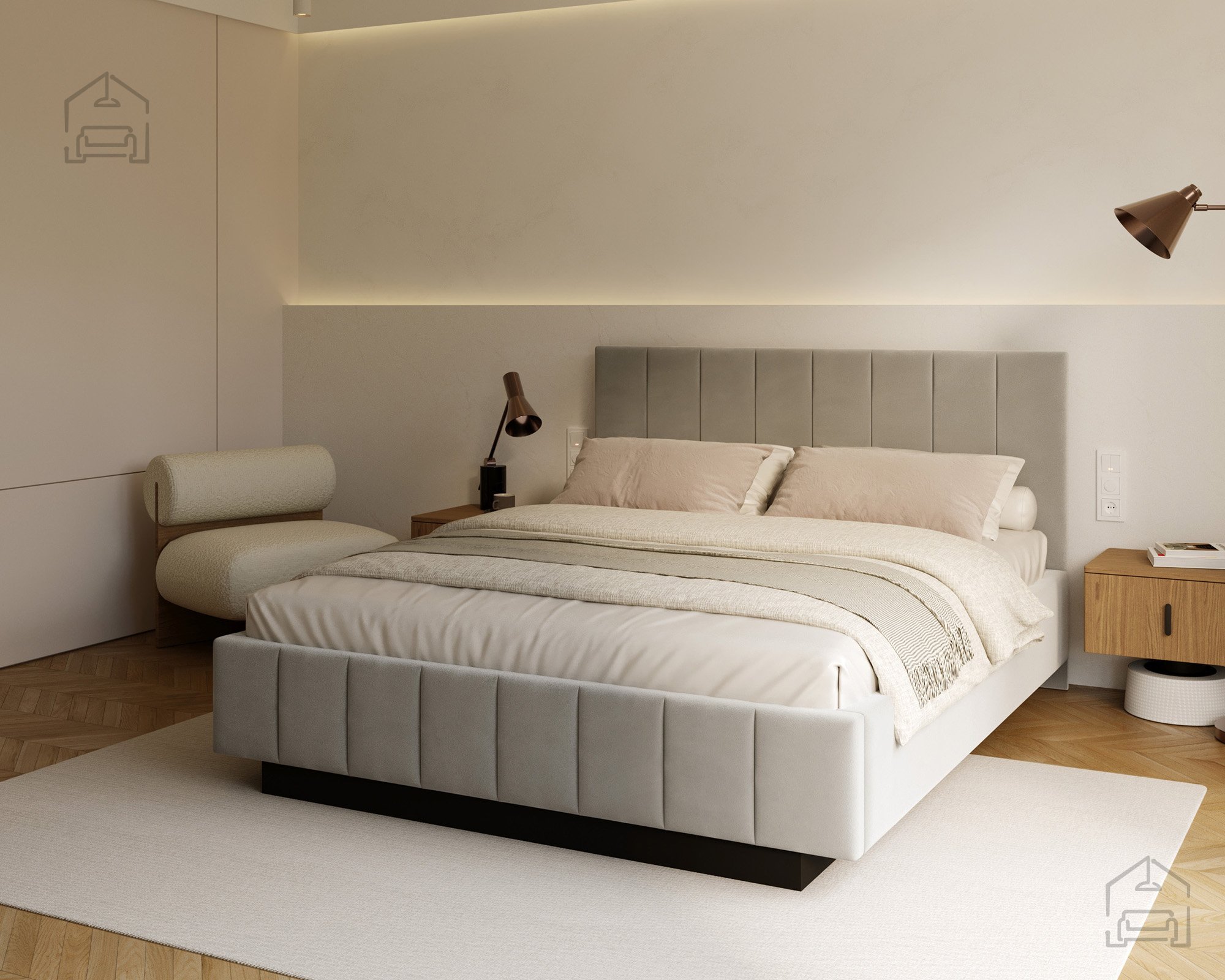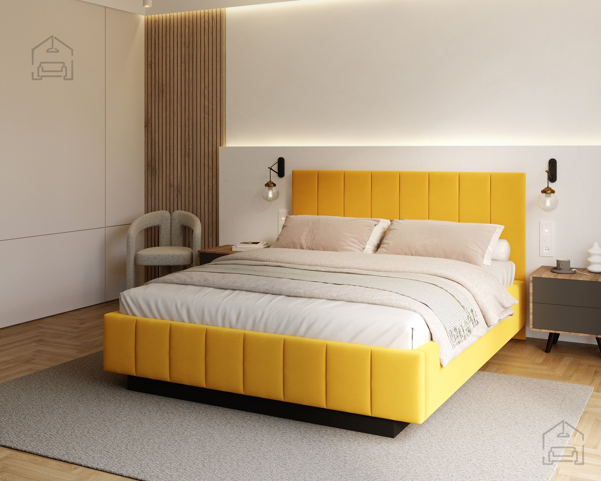 Das Bett ist von allen Seiten gut zugänglich, was den Alltag besonders angenehm macht. Im Vergleich zu klassischen Modellen mit geschlossener Basis wirkt Levito deutlich luftiger und moderner – perfekt sowohl für kleinere Schlafzimmer als auch für großzügige Räume, in denen Design und Offenheit betont werden sollen.