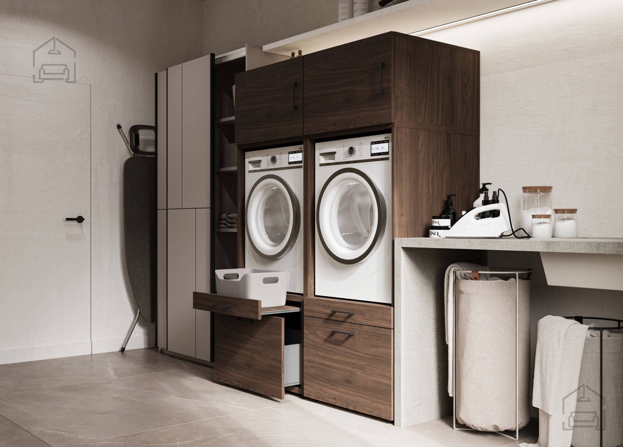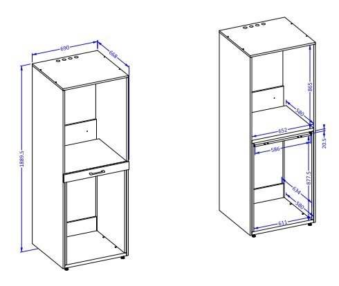 Der Aza-Schrank eignet sich sowohl für private Haushalte als auch für Ferienwohnungen oder Apartments, wo Haushaltsgeräte dezent in den Raum integriert werden sollen. Mit seiner Höhe von 189 cm bietet er zusätzlichen Stauraum oberhalb der Geräte – ideal für Waschmittel, Reinigungsprodukte oder andere Utensilien, die man gerne griffbereit hat.