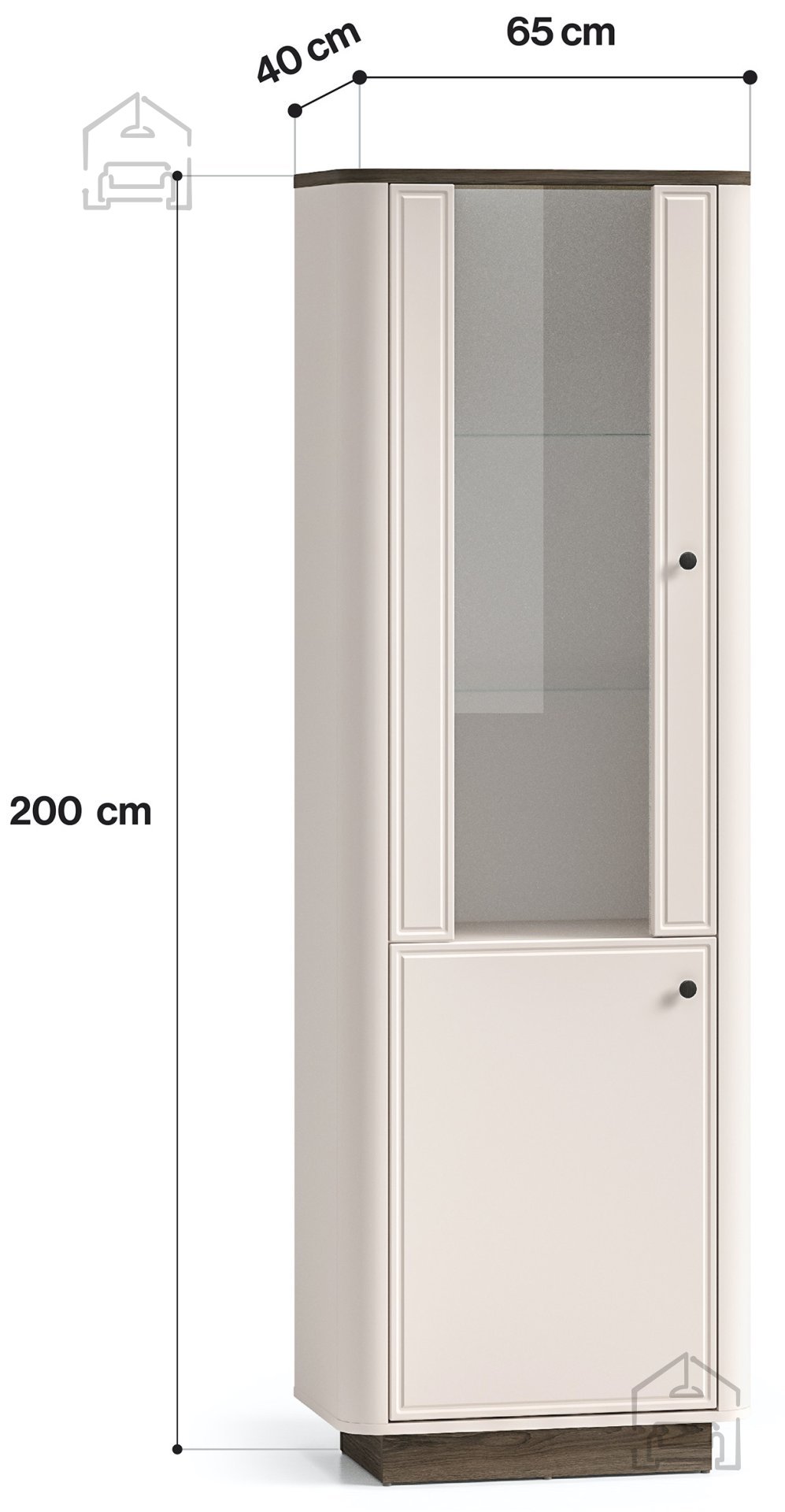Die Vitrine Vilavio 01 besticht durch ihren feinen Kontrast und ihre harmonische Formgebung. Sie verbindet klassische Elemente mit modernem Design und passt dadurch zu verschiedensten Einrichtungsstilen – von rustikal bis minimalistisch. Ihre vertikale Form streckt den Raum optisch und schafft ein Gefühl von Höhe, während die Glastüren Licht einfallen lassen und die ausgestellten Stücke elegant in Szene setzen.