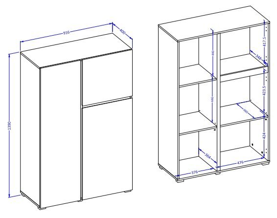 Laminierte Spanplatte 92x40x139 cm: Hohe Kommode Asymetric – Helvetia meble.