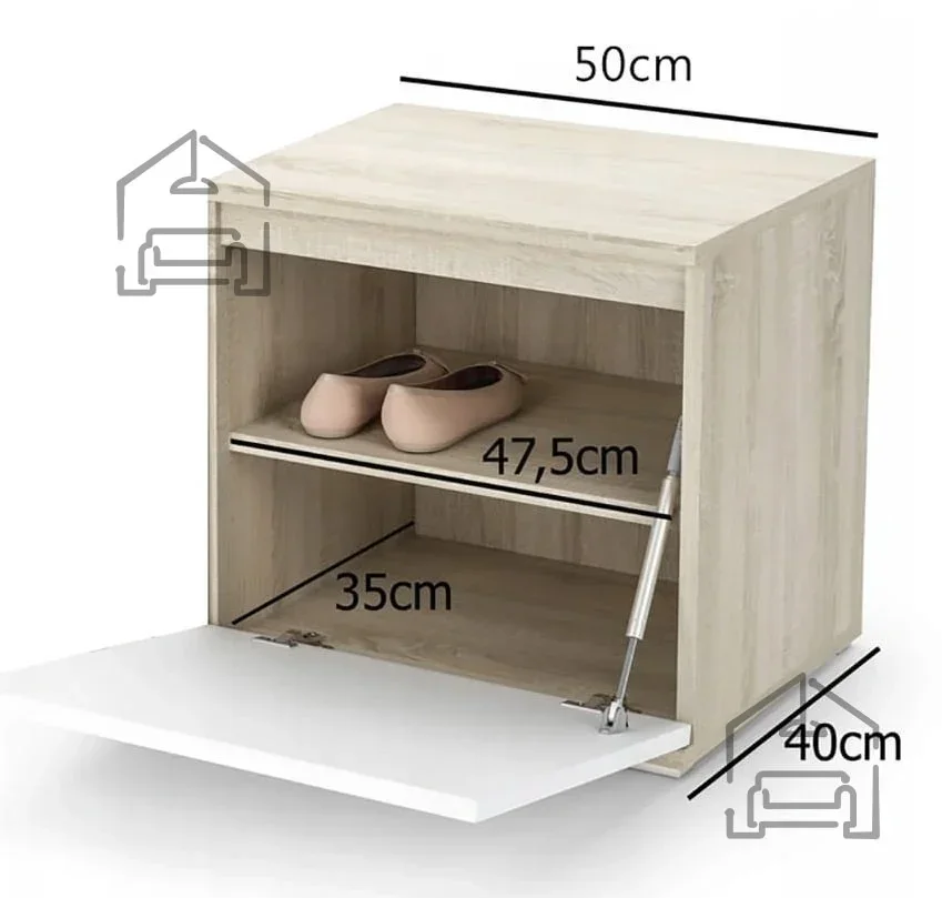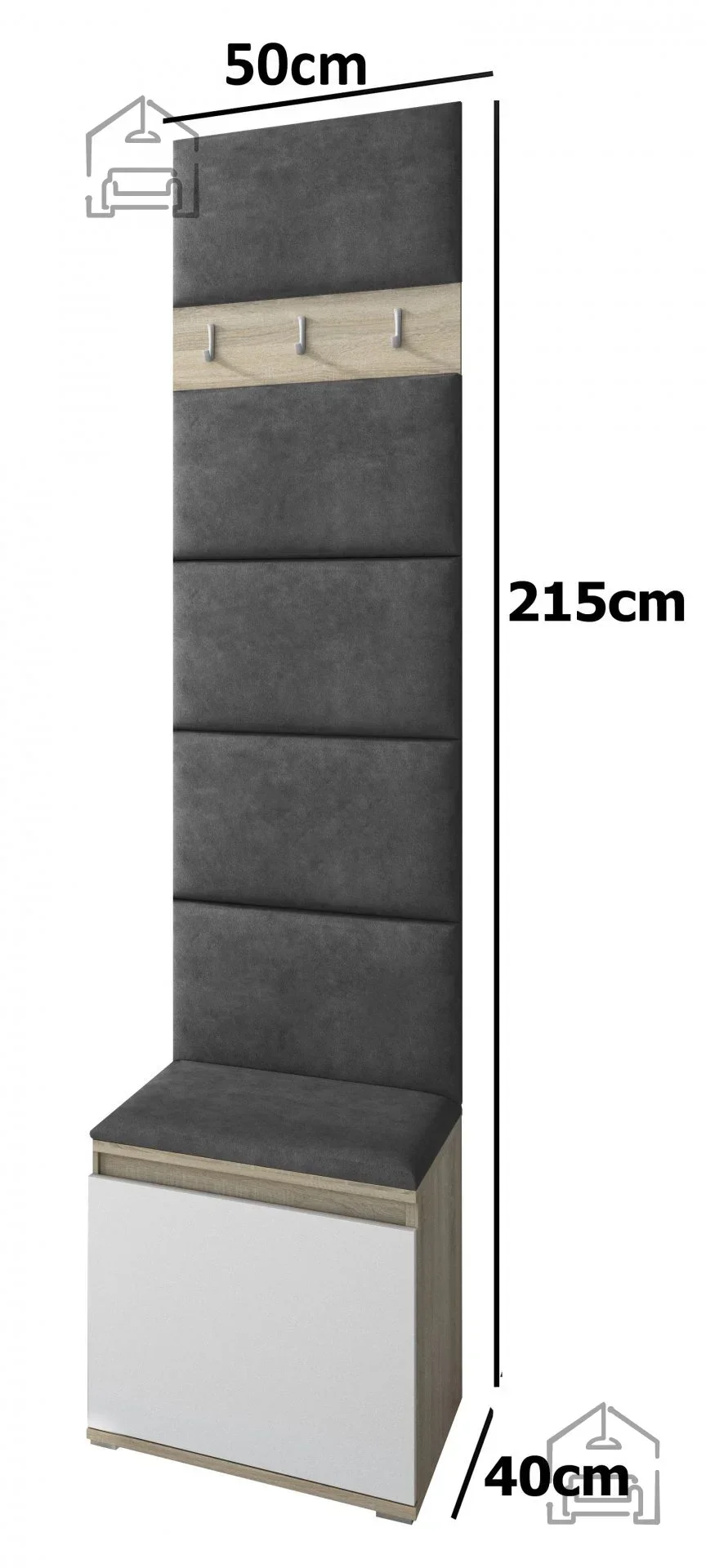 Die Maße des Sets bieten ein ausgewogenes Verhältnis zwischen Funktionalität und Platzersparnis. Mit einer Breite von 50 cm und einer Tiefe von 40 cm eignet es sich auch ideal für schmale Flure oder kleinere Wohnungen. Die Höhe von 215 cm nutzt den vorhandenen Raum optimal aus, betont die vertikale Linie des Zimmers und sorgt für ein geordnetes Gesamtbild. So bleibt alles griffbereit, ohne den Raum zu überladen.