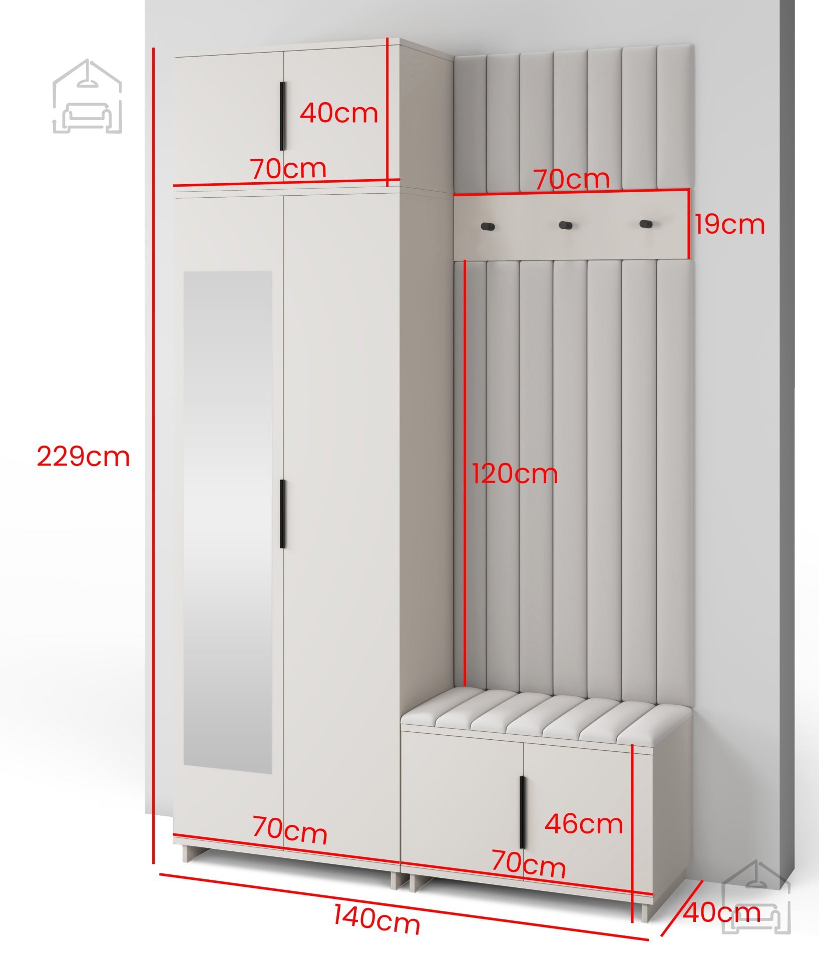 Das Garderoben-Set Bianco 14 mit Kleber – PKMebel ist eine hervorragende Wahl für alle, die Wert auf Stil, Qualität und Funktionalität legen. Mit präziser Verarbeitung, weich gepolsterten Paneelen und einem durchdachten Design wird Ihr Eingangsbereich schöner, ordentlicher und angenehmer im Alltag.