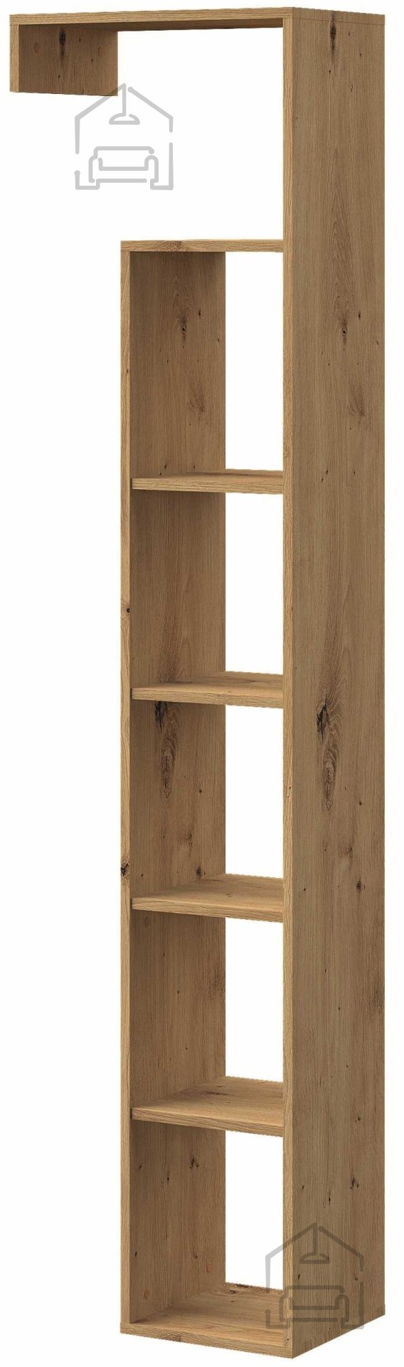 Der Aufsatz für Regal oder Schrank Index 17 in der Farbe Eiche Artisan ist ein funktionales und zugleich optisch ansprechendes Element, gefertigt in der Domel-Fabrik in Polen. Er dient als praktische Ergänzung zu den Basis-Regalmodulen und ermöglicht, den Stauraum zu erweitern oder eine höhere Schrankkombination zu gestalten. Mit seinen Maßen von 50×30×200,3 cm fügt er sich harmonisch in moderne Wohnräume ein, in denen natürliche Holzoptik und sorgfältig ausgewählte Materialien im Vordergrund stehen.
