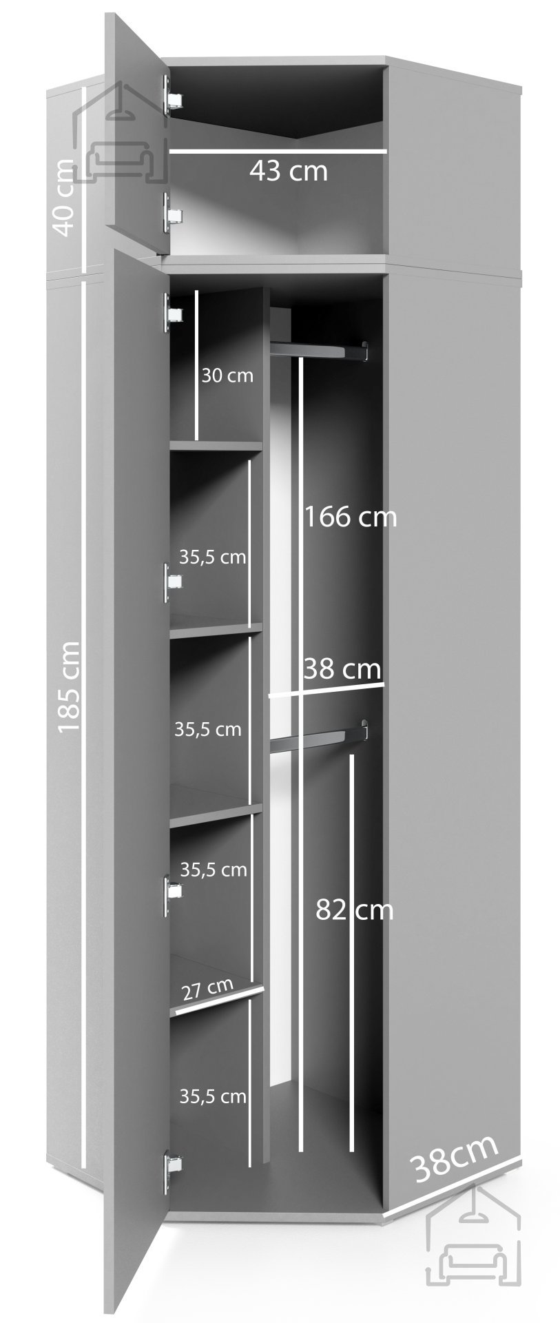 Das Set Bianco 21 eignet sich für verschiedenste Vorraumgrößen – von kleinen Stadtwohnungen in Wien bis zu geräumigen Häusern. Durch den modularen Aufbau kann es entlang einer Wand oder in einer Ecke platziert werden und passt sich so flexibel den Raumgegebenheiten an. Die helle Kaschmirfarbe schafft ein offenes Raumgefühl, wodurch das Möbel auch in schmaleren Fluren nicht wuchtig wirkt. Der Spiegel am Garderobenschrank vergrößert den Raum optisch und ist praktisch beim letzten Blick in den Spiegel vor dem Hinausgehen.
