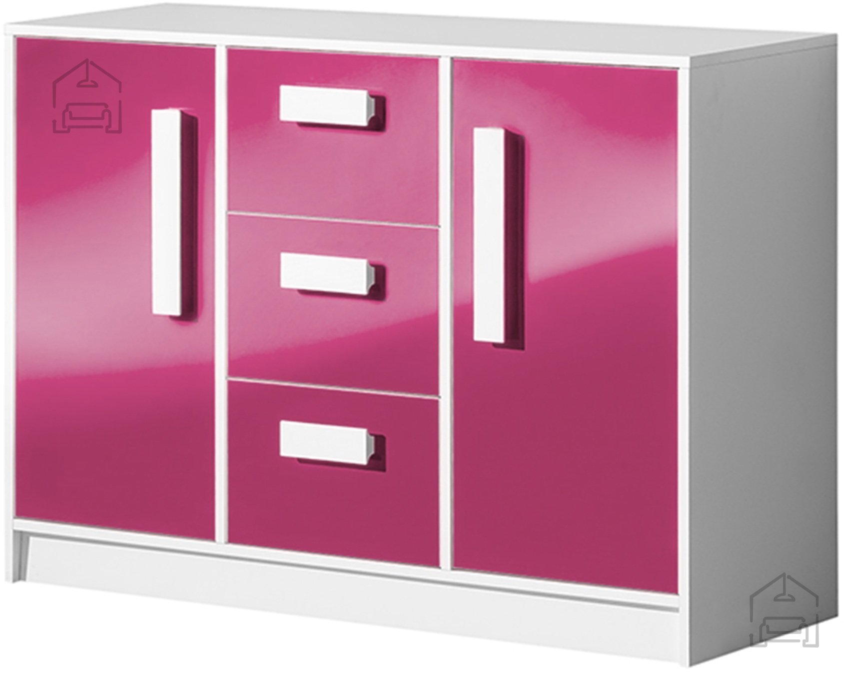 Die Basis der Kommode besteht aus einer 16 mm starken laminierten Spanplatte, die ein ausgewogenes Verhältnis zwischen Stabilität und Gewicht bietet. Die Laminierung schützt vor Kratzern und Feuchtigkeit und erleichtert zugleich die Reinigung. Der weiße Korpus bildet einen neutralen Hintergrund, der die rosa Front schön zur Geltung bringt. Dieser Kontrast verleiht dem Möbelstück einen frischen, modernen Look, der zu vielen Einrichtungsstilen passt.