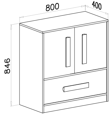 Die Kommode besteht vollständig aus laminierter Spanplatte, die für ihre Robustheit und einfache Pflege bekannt ist. Sämtliche Kanten sind mit einem 0,5 mm starken ABS-Kantenband versehen, das die Oberflächen zusätzlich vor Feuchtigkeit und mechanischen Beschädigungen schützt. Diese sorgfältige Verarbeitung erhöht die Widerstandsfähigkeit im täglichen Gebrauch und sorgt für ein gepflegtes, elegantes Erscheinungsbild.