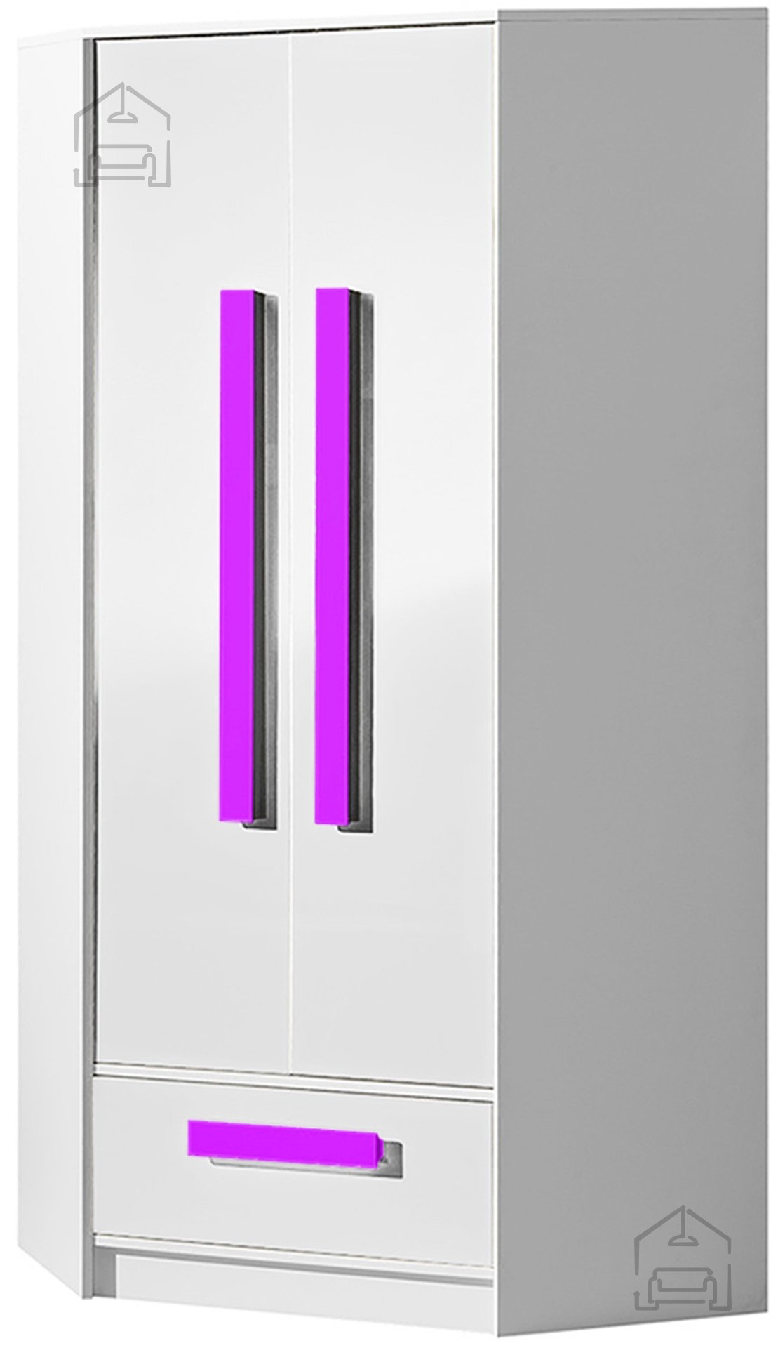 Der Eckkleiderschrank Guliver 02 ist die ideale Lösung für alle, die auf der Suche nach praktischen, platzsparenden und ästhetisch ansprechenden Möbeln sind. Er vereint minimalistisches Design, Funktionalität und hochwertige Verarbeitung in einem Produkt, das viele Jahre Freude bereiten wird. Das Weiß sorgt für eine helle, freundliche Atmosphäre, während die farbigen Griffe individuellen Stil ermöglichen. Mit seinen ausgewogenen Proportionen und durchdachten Details ist dieser Schrank die perfekte Wahl für moderne Wohnräume, in denen jedes Detail zählt.