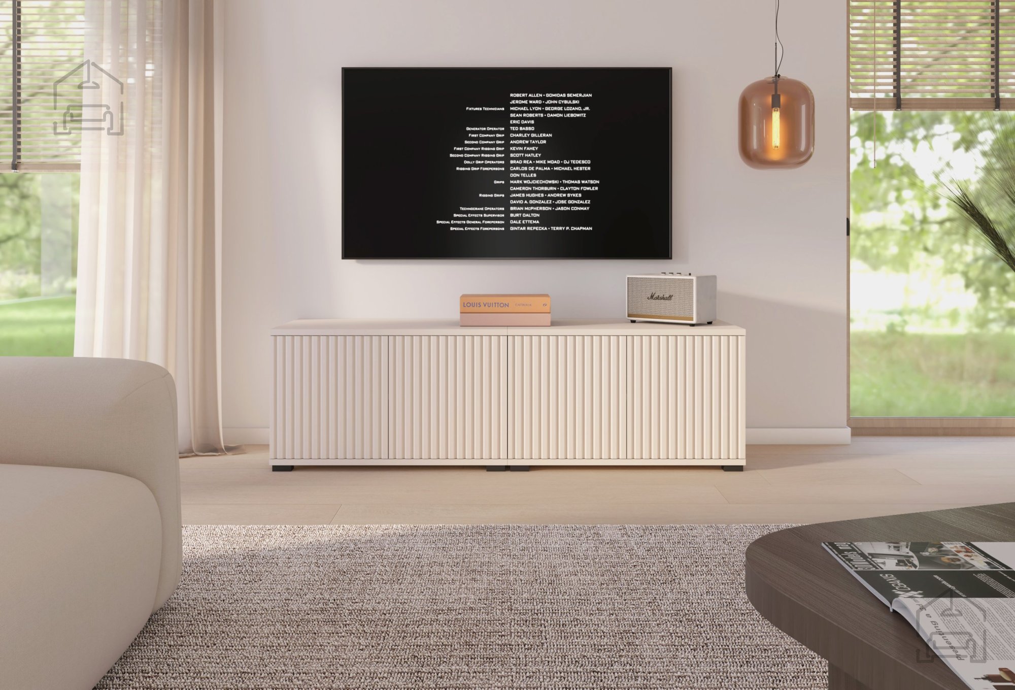 Das TV-Board Rayo 140 eignet sich ideal für Wohnzimmer, Jugendzimmer oder kleinere Apartments, wo platzsparende, aber funktionale Möbel gefragt sind. Durch die neutrale Farbgebung lässt es sich gut mit anderen Möbelstücken wie Regalen, Couchtischen oder Vitrinen in ähnlichen Farbtönen kombinieren.