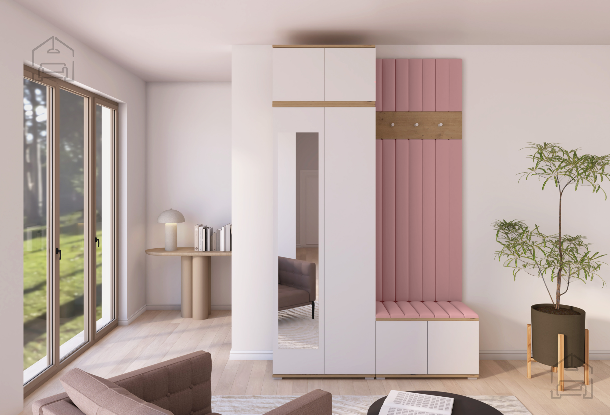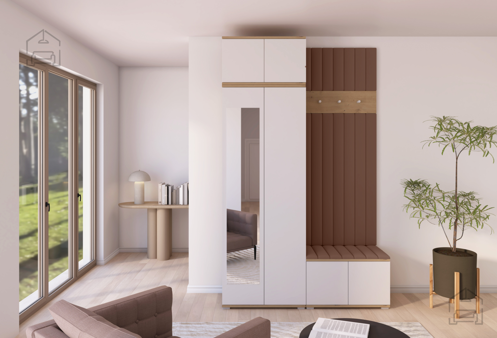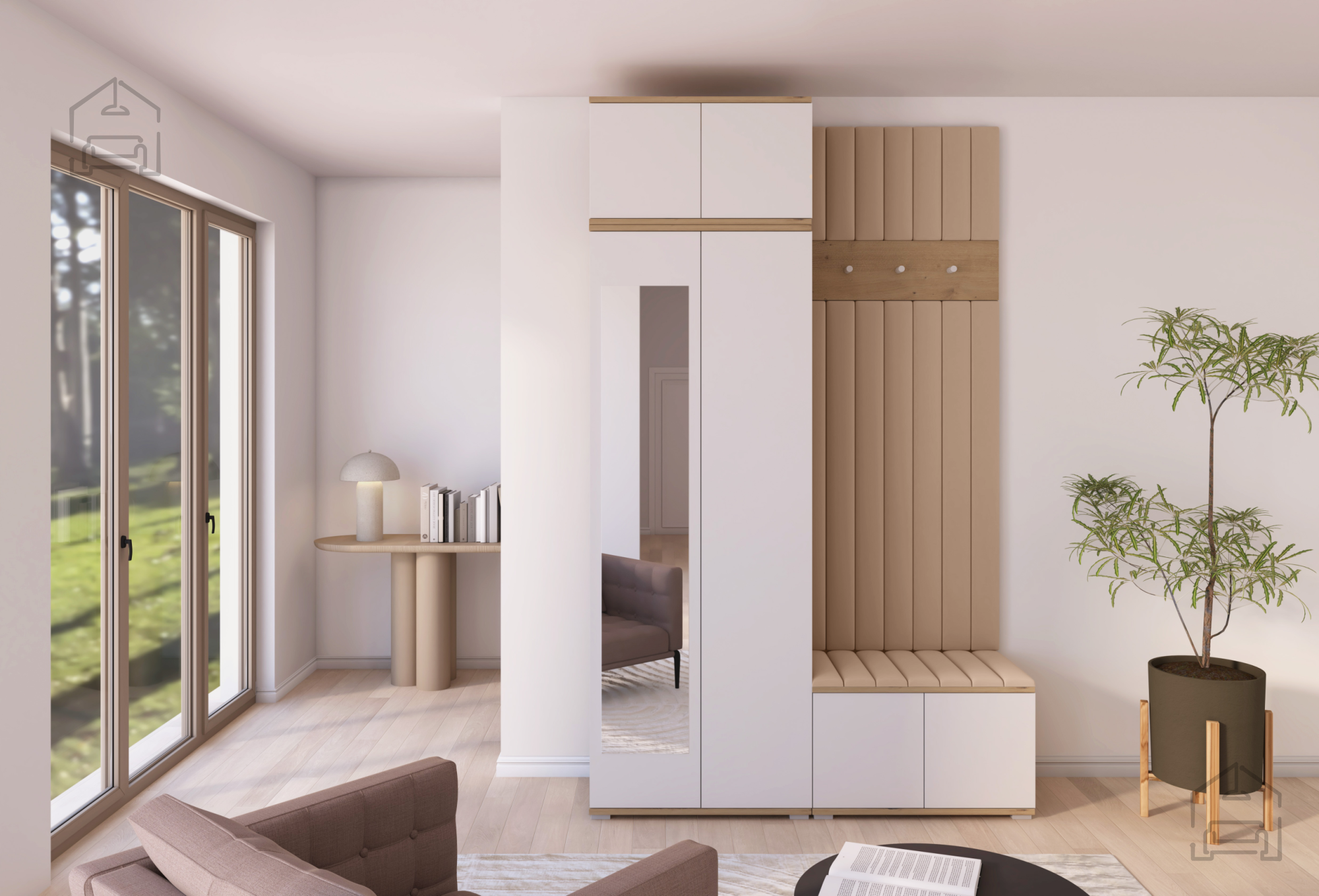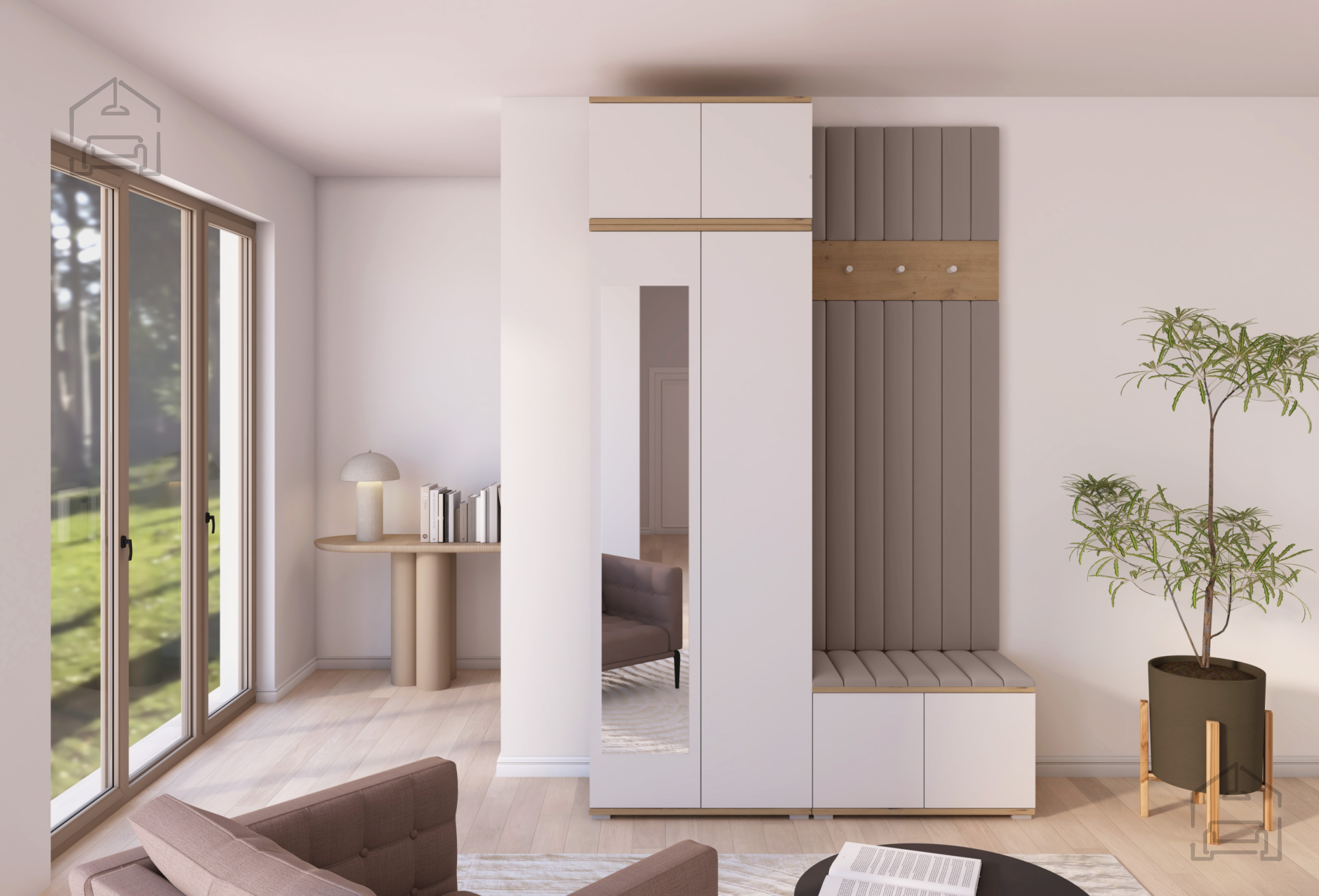 Jedes Element des Sets ist auf den täglichen Gebrauch abgestimmt. Die Haken und Paneele bieten ausreichend Platz für Jacken und Mäntel, während der Schrank Ordnung und Übersicht schafft. Der Sitzbereich erhöht den Komfort beim Anziehen, und das Push-to-Open-System ermöglicht eine einfache Bedienung ohne Griffe. So bleibt das Möbel nicht nur pflegeleicht, sondern auch optisch klar und modern.