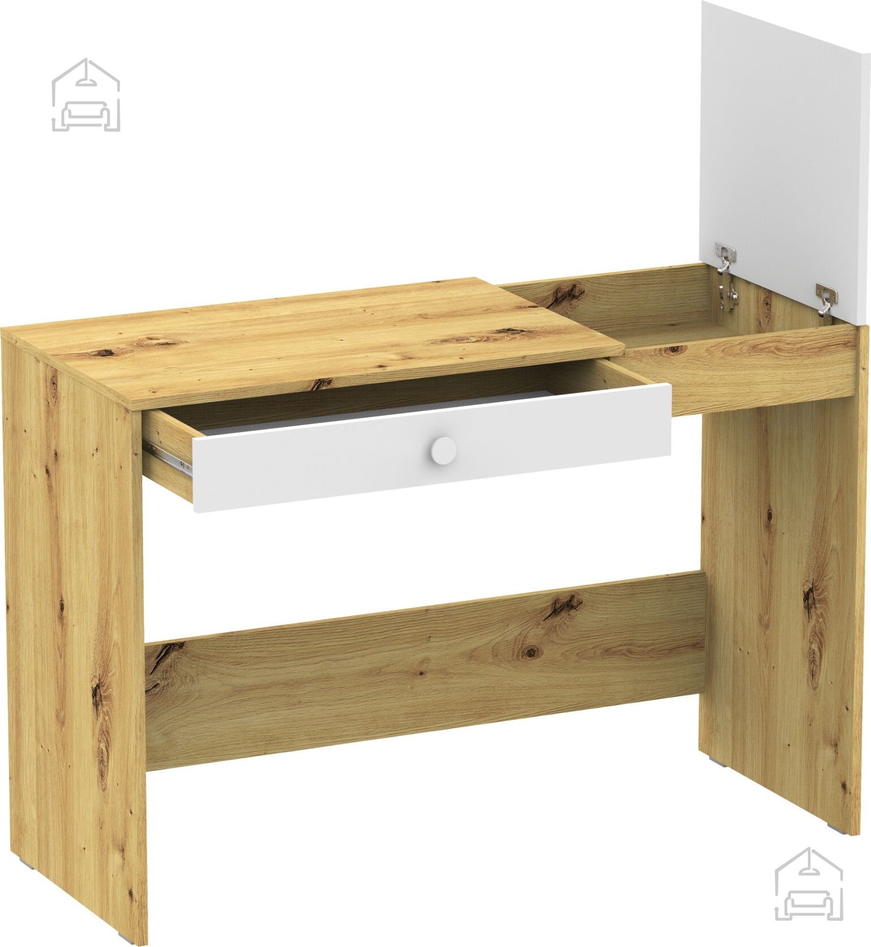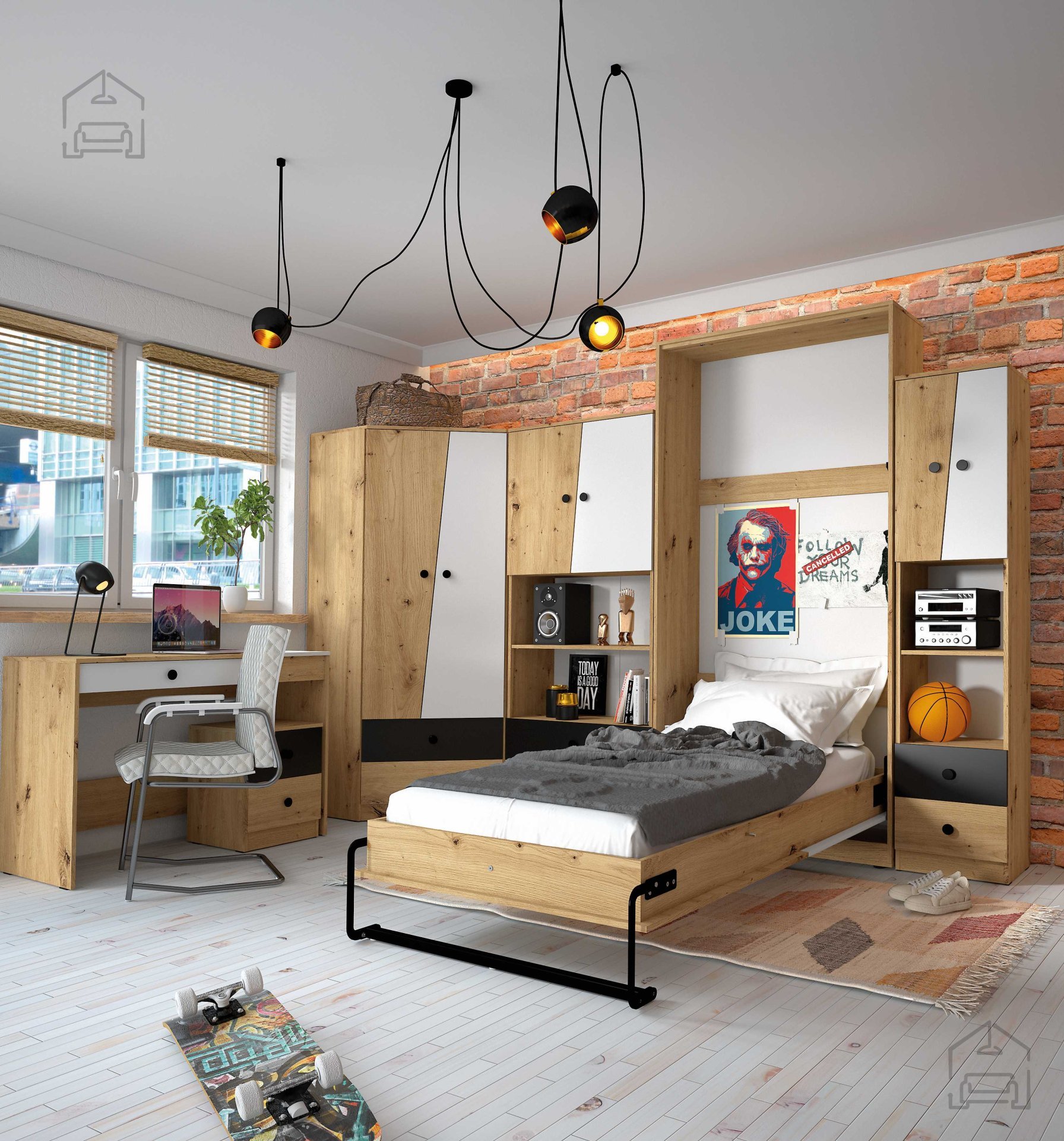 Das Artisan-Eichen-Dekor vermittelt eine angenehme Wärme, die hervorragend mit weißen oder grauen Wänden sowie anderen Holzelementen harmoniert. Die Kombination aus matten Flächen und natürlicher Maserung wirkt modern, ohne aufdringlich zu sein. Der Schreibtisch Nero 10 kann als Einzelstück oder als Teil einer größeren Möbelserie im gleichen Dekor verwendet werden, um eine stimmige Raumgestaltung zu erzielen. Dank seiner klaren Linie eignet er sich sowohl für Jugendliche als auch für Erwachsene.