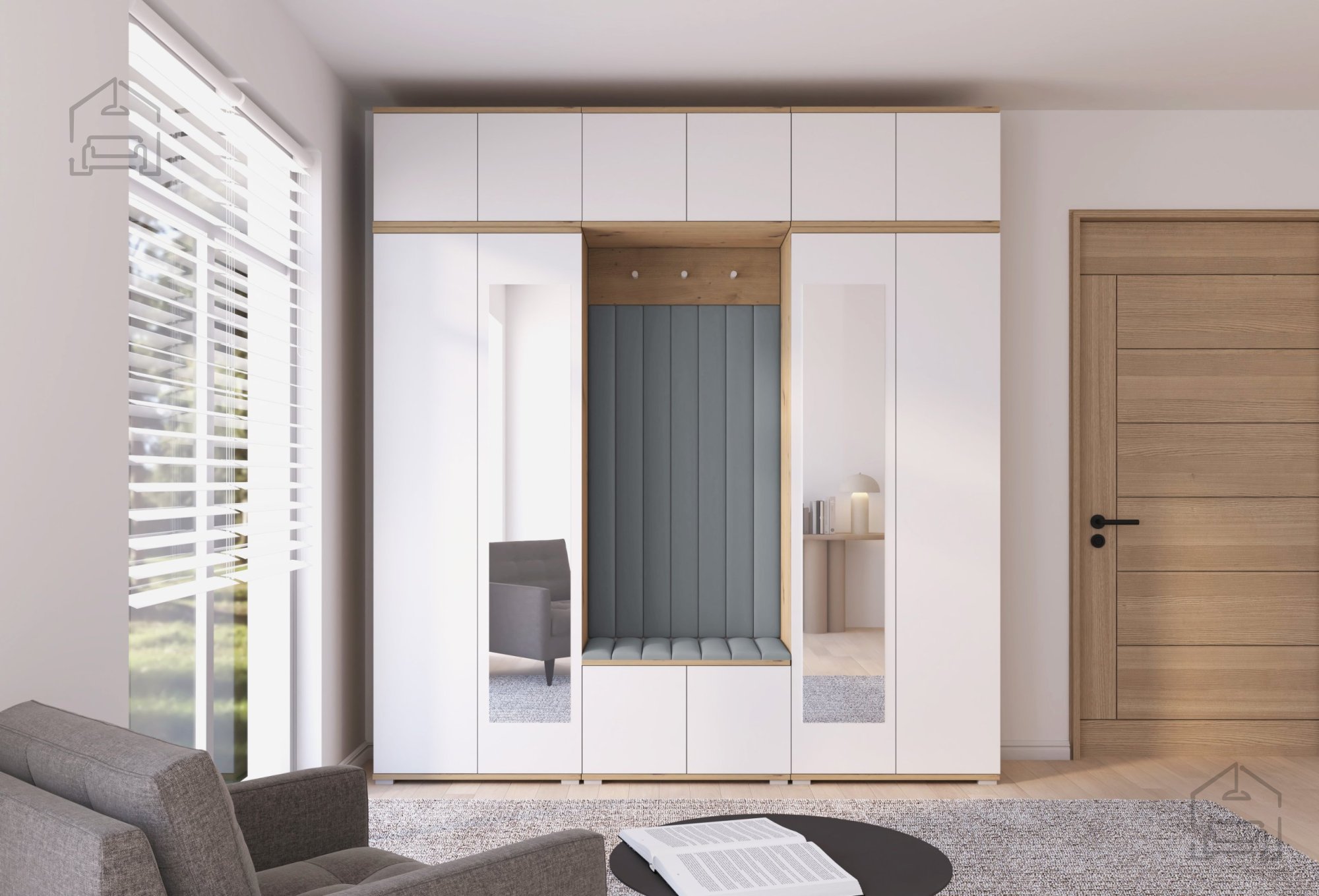 Das Garderobenset Sevilla 10 ist für den täglichen Gebrauch konzipiert. Dank hochwertiger Materialien und des einfachen Öffnungssystems ist die Pflege unkompliziert – ein regelmäßiges Abwischen mit einem weichen, feuchten Tuch genügt. Die hellen Oberflächen lassen den Raum größer und luftiger wirken, was besonders in kleineren Eingangsbereichen von Vorteil ist. Die gepolsterten Paneele sind nicht nur dekorativ, sondern schützen auch die Wand vor Abnutzung.