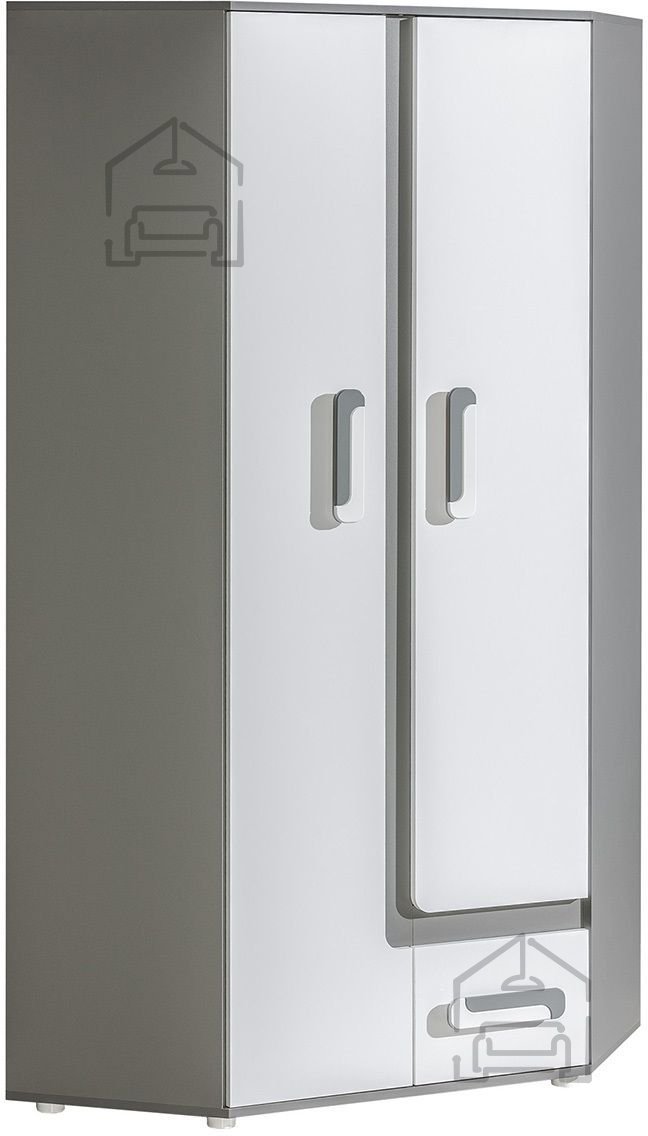 Der Eckkleiderschrank Apetito 02 in Anthrazit ist eine funktionale Lösung, um den vorhandenen Platz im Schlafzimmer, Vorraum oder Kinderzimmer optimal zu nutzen. Gefertigt wird er in der renommierten Fabrik Domel in Polen, wo präzise Verarbeitung, modernes Design und langlebige Materialien zusammenkommen. Die Kombination aus anthrazitfarbenem Korpus und weißen Fronten schafft einen eleganten Kontrast, der zu vielen Einrichtungsstilen passt – von minimalistisch bis klassisch.