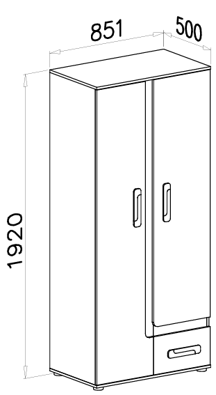 Mit den Abmessungen von 85,1×50×192 cm bietet der Schrank eine ausgewogene Balance zwischen Geräumigkeit und kompakter Form. Er eignet sich sowohl für Schlafzimmer als auch für Vorzimmer, da er wenig Platz beansprucht und dennoch ausreichend Stauraum bietet. Die Innenaufteilung ermöglicht ein übersichtliches Ordnen – mit Platz zum Aufhängen von Kleidung und Regalböden für gefaltete Stücke. Dank seiner durchdachten Höhe passt der Schrank auch gut in kleinere Räume mit niedrigerer Decke, wo zusätzlicher Stauraum besonders geschätzt wird.