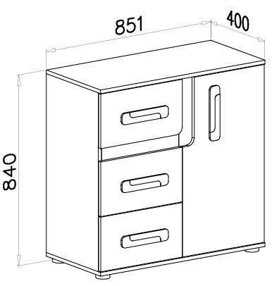 Die Kommode besteht aus 16 mm starker, laminierten Spanplatte, die für Stabilität und Widerstandsfähigkeit im Alltag sorgt. Alle Kanten sind mit einer 0,5 mm dicken ABS-Schutzschicht versehen, was die Langlebigkeit zusätzlich erhöht und vor Stößen oder Kratzern schützt. Die Laminatoberfläche ist pflegeleicht und feuchtigkeitsbeständig, wodurch sich die Kommode auch für häufig genutzte Räume bestens eignet.