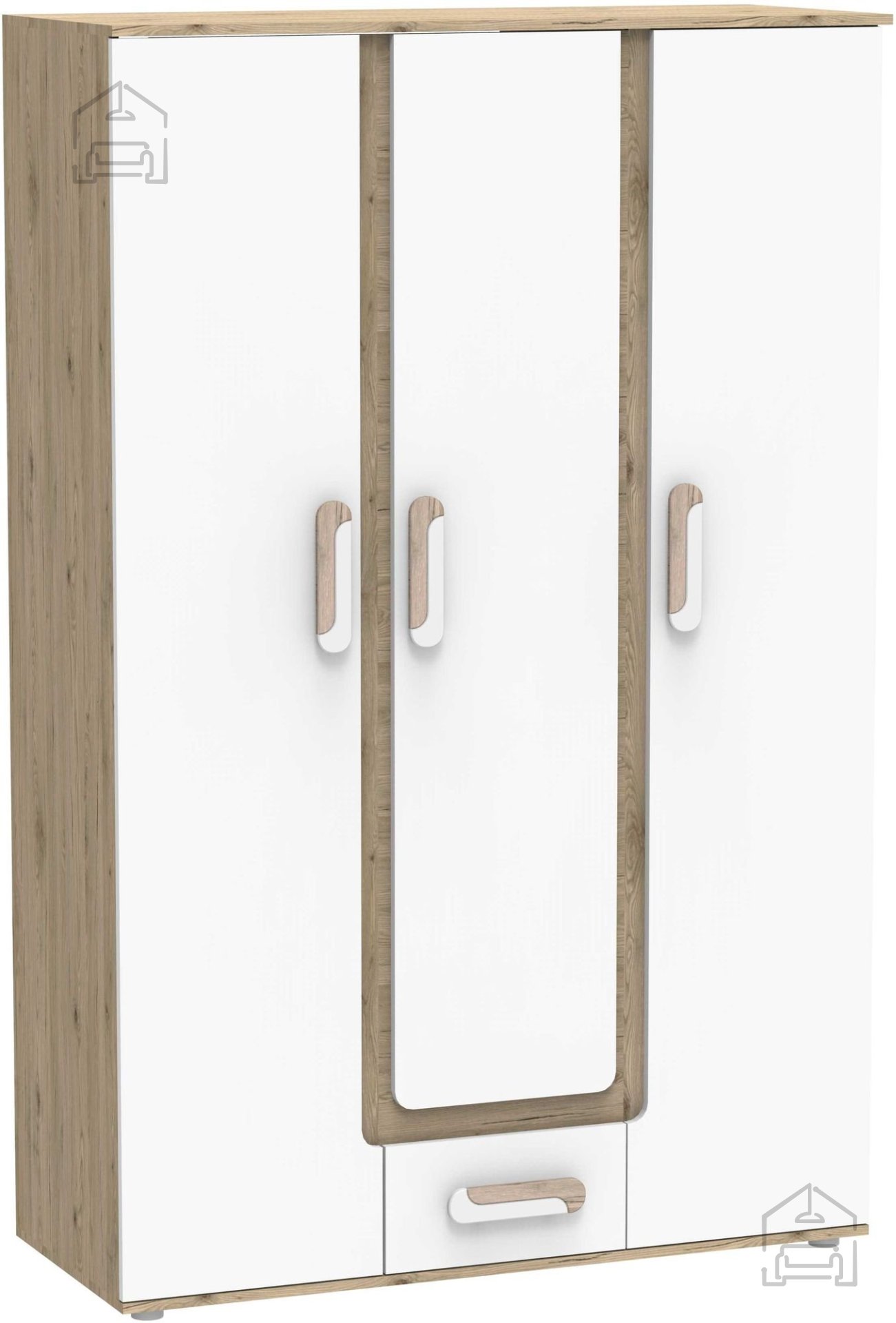 Der Kleiderschrank Apetito 19 in heller Eiche und Weiß vereint modernes Design mit einer durchdachten Innenaufteilung. Gefertigt wird er in der Domel-Fabrik in Polen, wo besonderer Wert auf sorgfältige Verarbeitung und präzise Details gelegt wird. Durch das ausgewogene Zusammenspiel von warmer Holzoptik und frischem Weiß fügt sich der Schrank harmonisch in verschiedenste Einrichtungsstile ein – von minimalistischen bis hin zu klassisch gestalteten Schlafzimmern oder Vorzimmern.