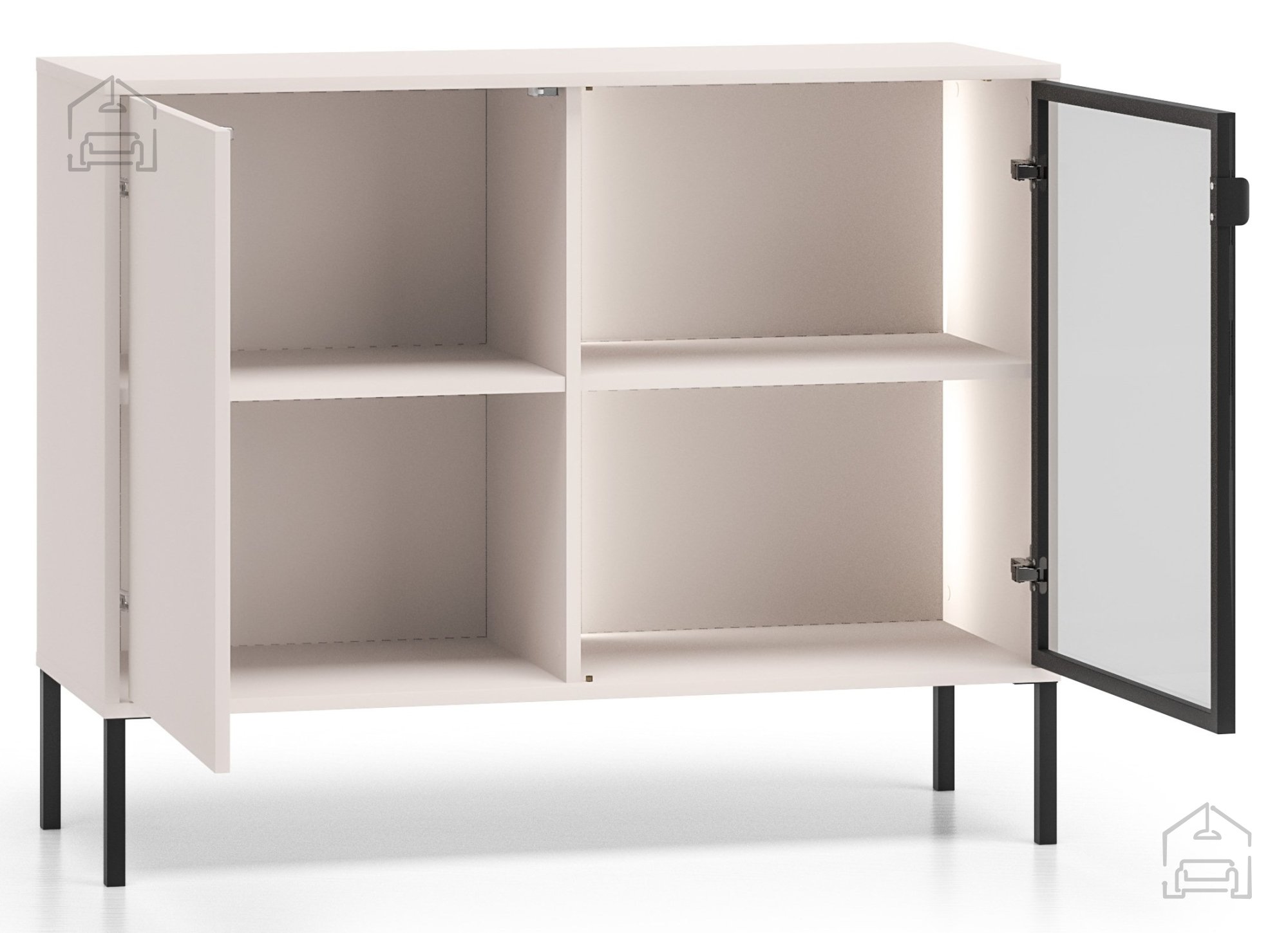 Die Kommode Barnee 03 – ML Meble gehört zur Kategorie des modernen Möbeldesigns mit einem Hauch von Industrial Style, abgerundet durch die elegante Farbe Kaschmir. Die Kombination aus schwarzen Details und warmen Farbtönen schafft ein harmonisches Gesamtbild, das zu vielen Einrichtungsstilen passt – von minimalistisch bis eklektisch. Dank ihrer Vielseitigkeit lässt sich die Kommode wunderbar mit Holz-, Metall- oder Glaselementen kombinieren.