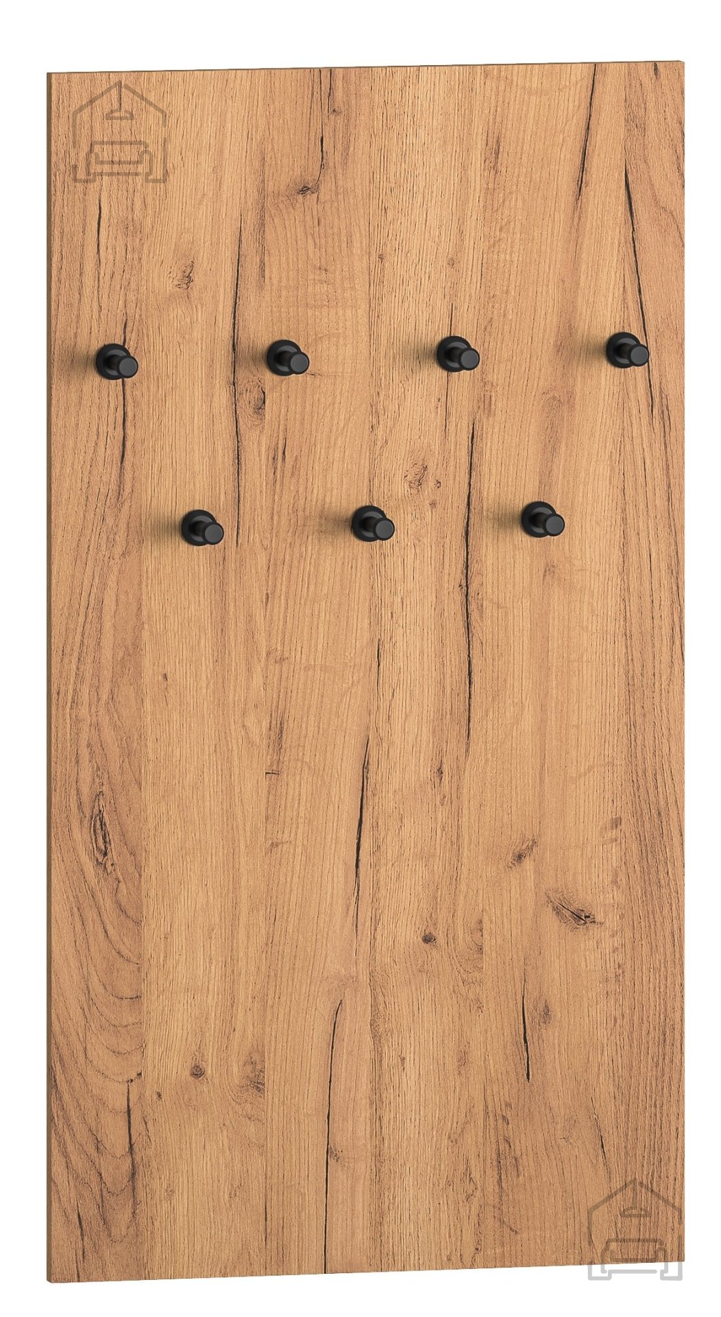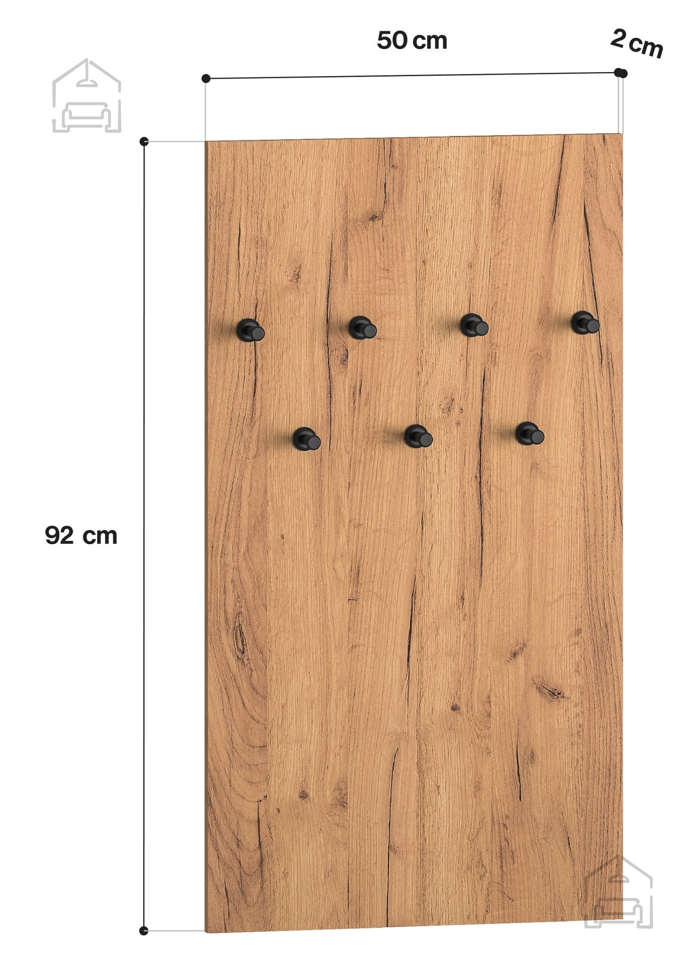 Die Vasco 12 Garderobe der Marke ML Meble überzeugt durch die gelungene Kombination aus dem warmen Farbton Gold Craft Eiche und kontrastierenden schwarzen Akzenten. Gefertigt aus hochwertiger Spanplatte bietet sie Stabilität und eine lange Lebensdauer. Mit ihren Maßen von 50 × 2 × 92 cm eignet sich dieses Stück perfekt für Vorzimmer, Flure oder Schlafzimmer, in denen wenig Platz ist, aber dennoch eine praktische Aufhängemöglichkeit für Kleidung und Accessoires gebraucht wird.