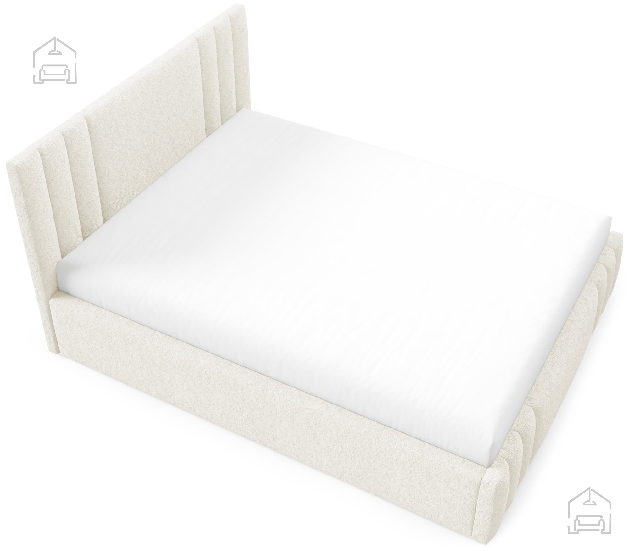 Die gepolsterte Oberfläche lässt sich einfach mit einem sanften Staubsaugeraufsatz oder einem weichen, feuchten Tuch reinigen – so bleibt das Bett lange gepflegt und frisch im Aussehen. Dank der robusten Konstruktion und der hochwertigen Materialien eignet sich das Bett ideal für den täglichen Gebrauch und behält dabei auch über längere Zeit seine ästhetische Qualität.