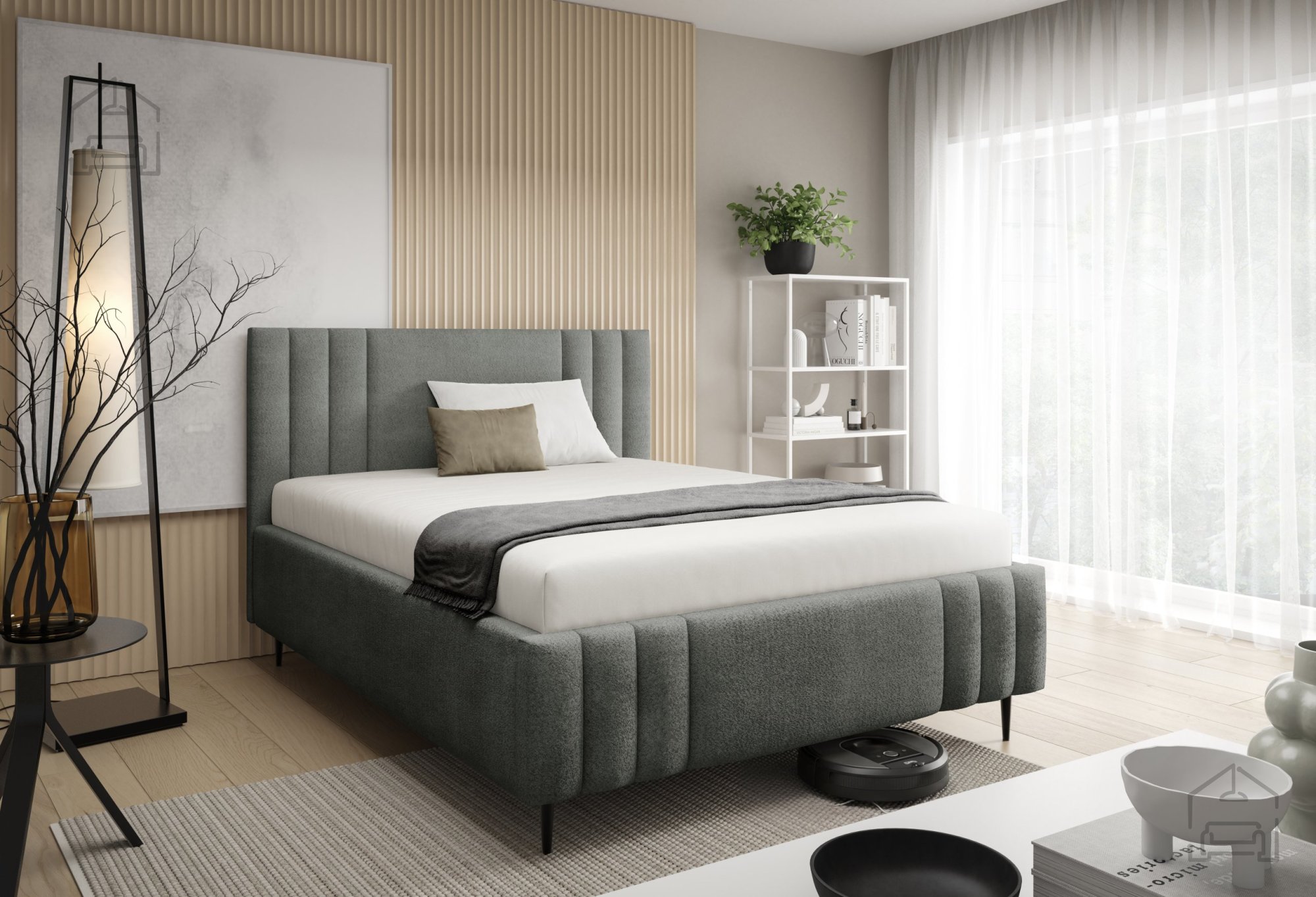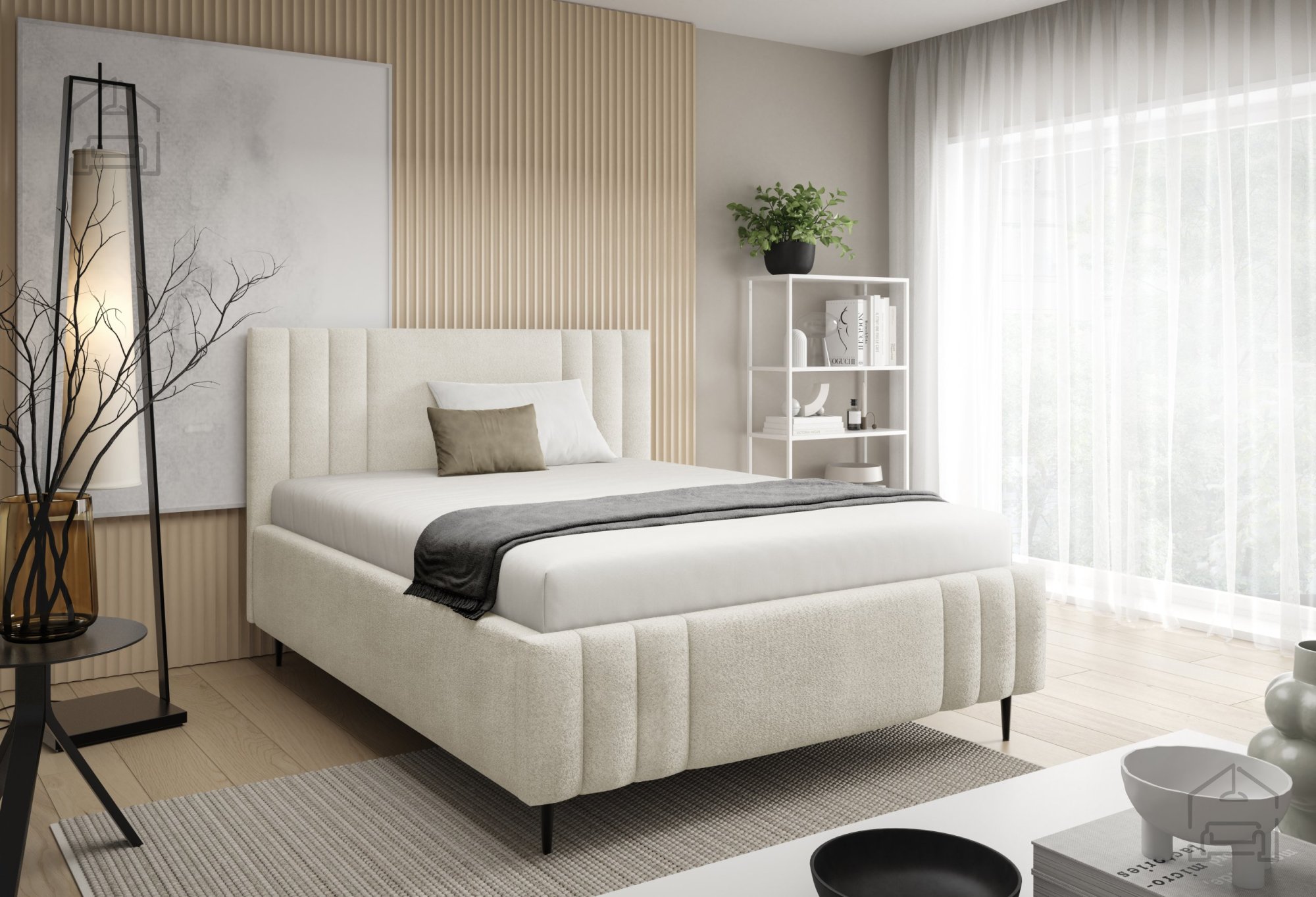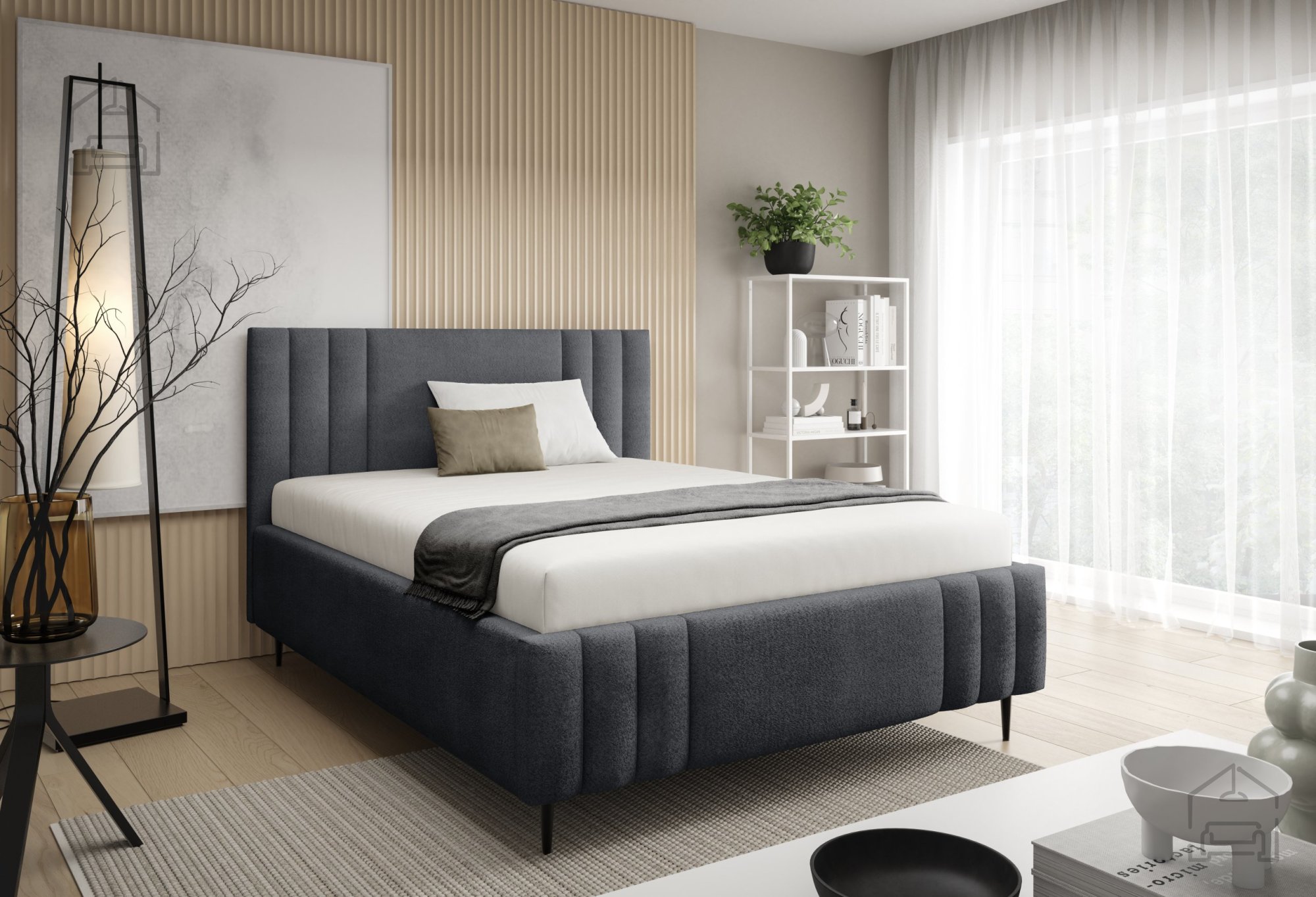 Das Bett Ribo mit Füßen ist ein modernes, funktionales Möbelstück, das die gemütliche Ausstrahlung eines Polsterbettes mit durchdachten Details verbindet. Gefertigt wird es in Polen in der Fabrik Meble Gruška, die für präzise Verarbeitung und hohe Materialqualität bekannt ist. Der gepolsterte Holzrahmen sorgt für eine warme, einladende Optik, während die schwarzen Metallfüße einen schönen Kontrast bilden und Stabilität sowie einen modernen Look verleihen.