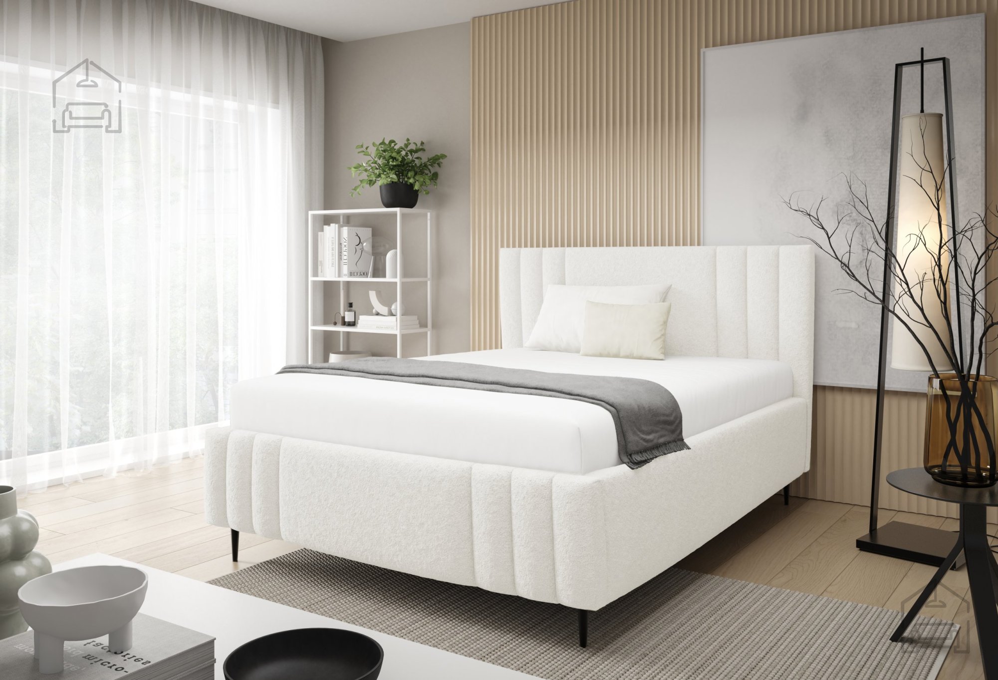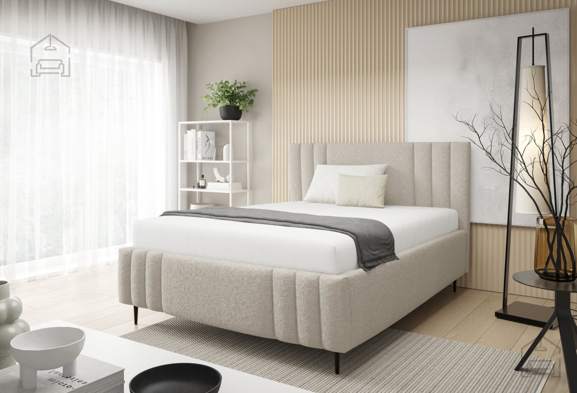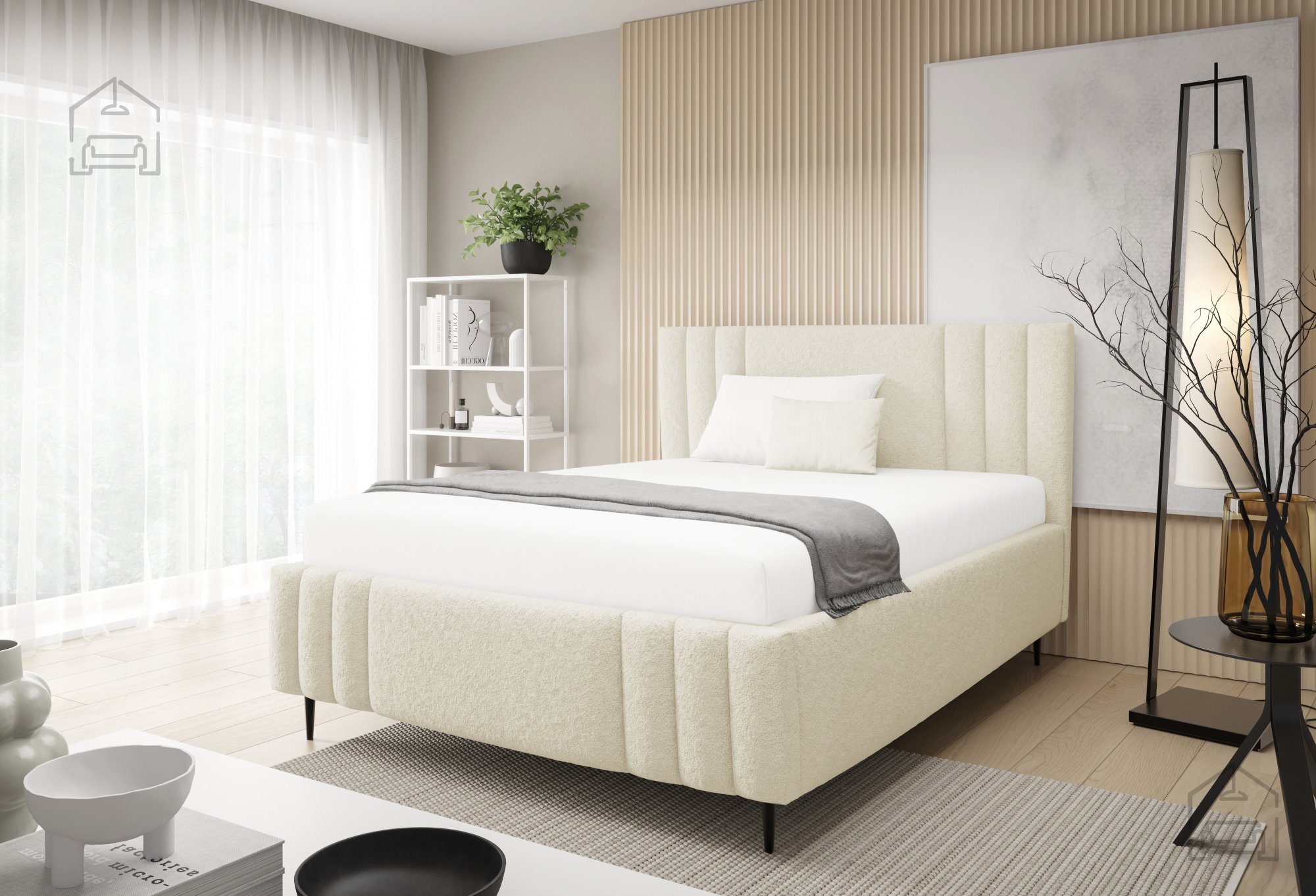 Das Bett Ribo mit Füßen ist ein modernes, funktionales Möbelstück, das die gemütliche Ausstrahlung eines Polsterbettes mit durchdachten Details verbindet. Gefertigt wird es in Polen in der Fabrik Meble Gruška, die für präzise Verarbeitung und hohe Materialqualität bekannt ist. Der gepolsterte Holzrahmen sorgt für eine warme, einladende Optik, während die schwarzen Metallfüße einen schönen Kontrast bilden und Stabilität sowie einen modernen Look verleihen.