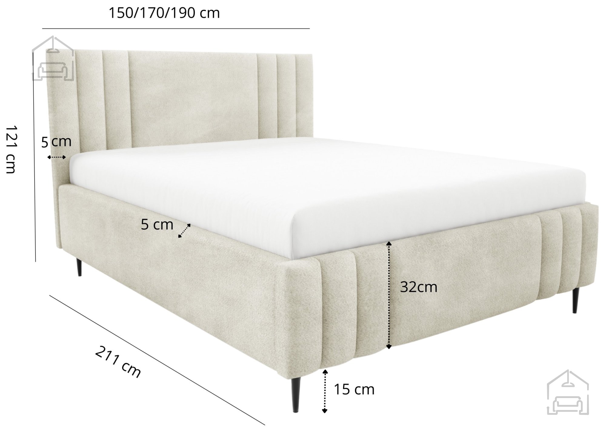 Das Bett Ribo mit Füßen – Meble Gruška lässt sich mit Matratzen in Standardgrößen kombinieren. Da es ohne Matratze geliefert wird, kann man selbst entscheiden, welche Art von Liegefläche am besten passt – ob klassische Federkernmatratze oder modernes Hybridmodell. Durch den gepolsterten Rahmen ist kein zusätzliches Kopfteil nötig, da dieser bereits eine bequeme Rückenlehne zum Lesen oder Fernsehen bietet.