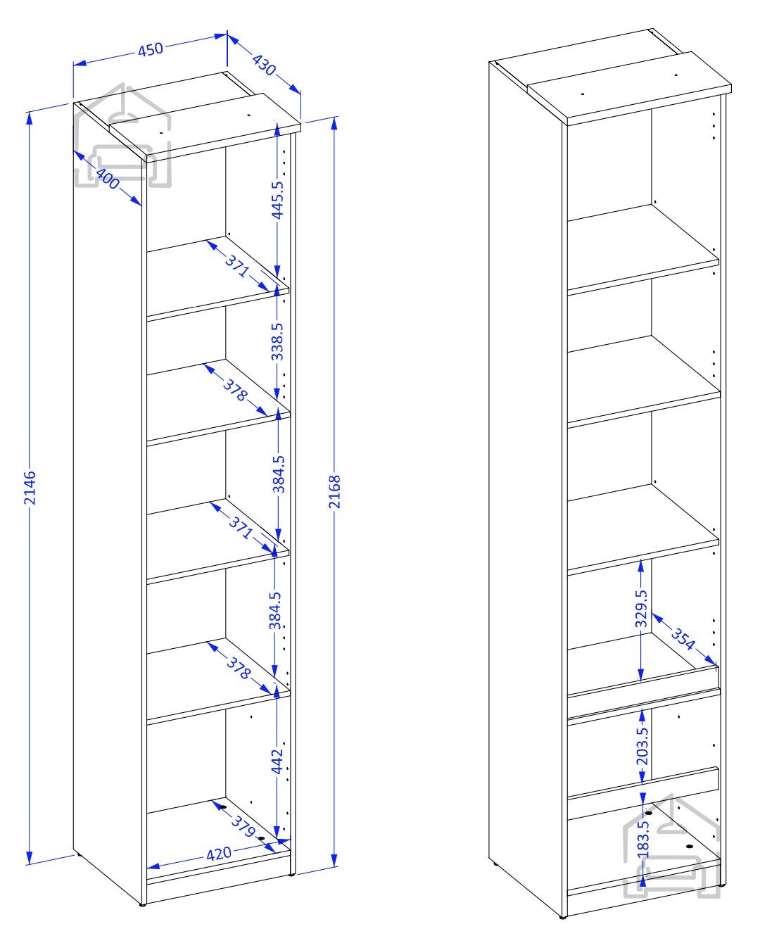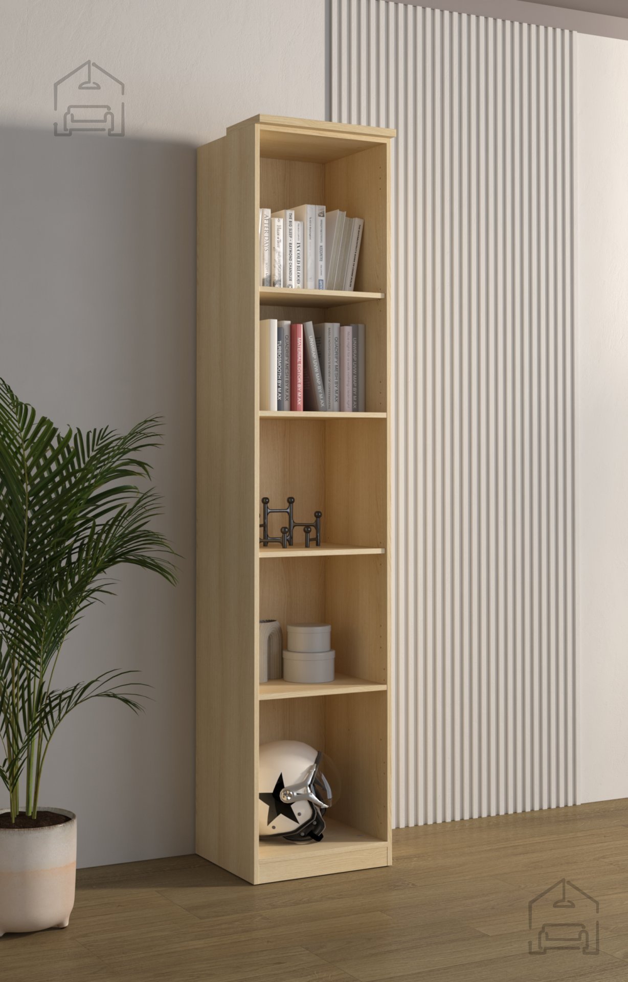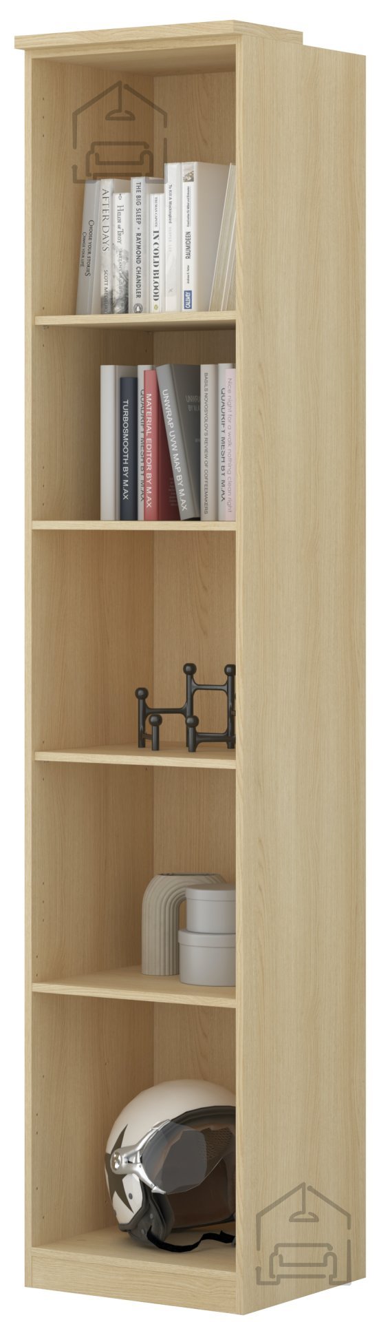 Das Regal wurde für vielseitige Nutzung konzipiert – als Bücherregal, für Dekorationsobjekte oder zur praktischen Aufbewahrung. Dank seiner Höhe bietet es viel Platz zur geordneten Organisation verschiedenster Gegenstände und bleibt dabei stets stabil und sicher. Die Anordnung der Innenfächer ermöglicht übersichtliches Verstauen von Büchern, Ordnern, Boxen oder Dekostücken. Mit seiner kompakten Breite von 45 cm lässt es sich perfekt an einer Wand, in einer Ecke oder als Teil einer größeren Möbelkombination im selben Dekor platzieren.