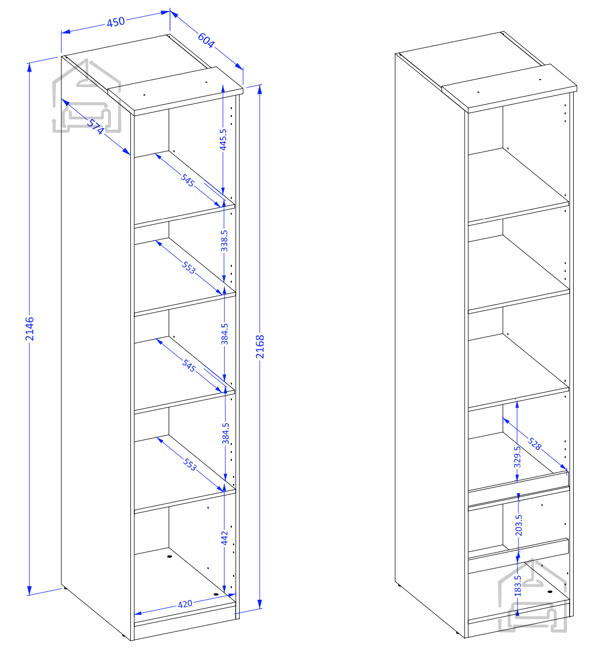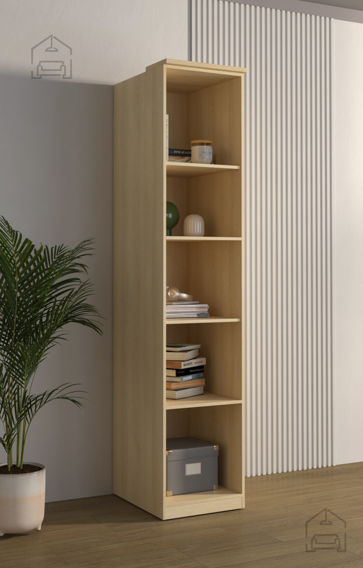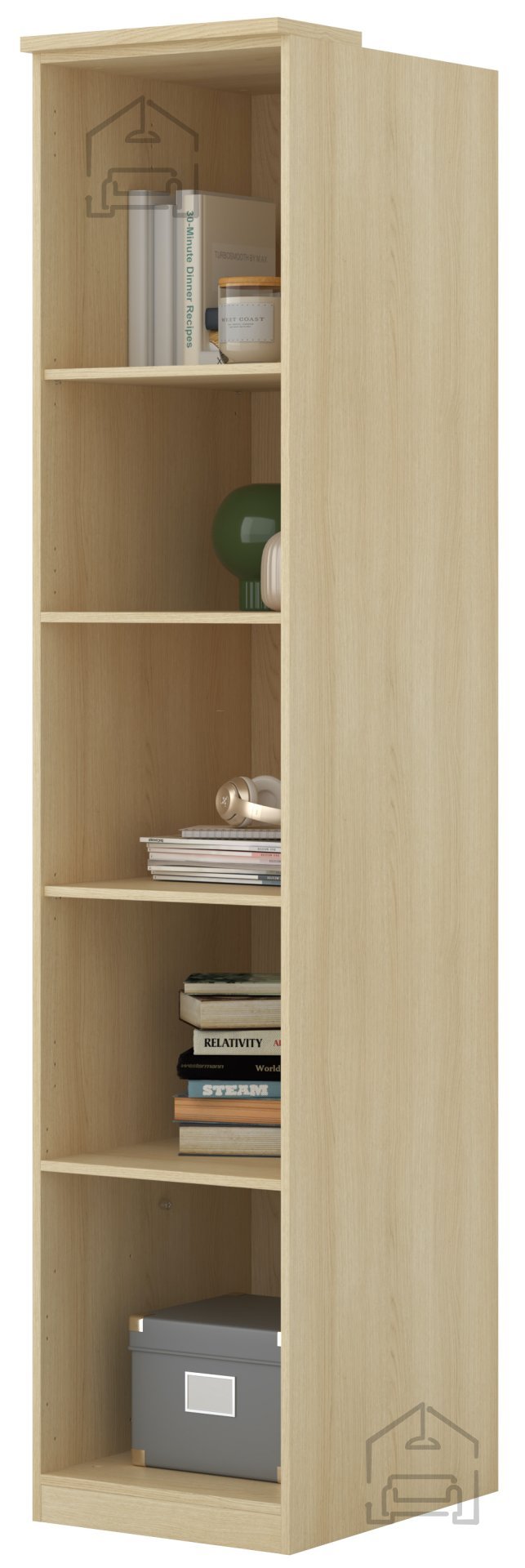 Das Regal ist vielseitig einsetzbar – als Bücherregal, für Dekorationen oder als praktische Aufbewahrungslösung. Dank seiner Höhe lassen sich Gegenstände übersichtlich und effizient organisieren, während es gleichzeitig stabil und sicher steht. Die Innenaufteilung der Fächer ermöglicht eine ordentliche Unterbringung von Büchern, Ordnern, Boxen oder Dekoartikeln. Mit seiner kompakten Breite von 45 cm eignet es sich ideal für Wand- oder Eckaufstellungen oder als Teil einer größeren Möbelkombination im selben Dekor.