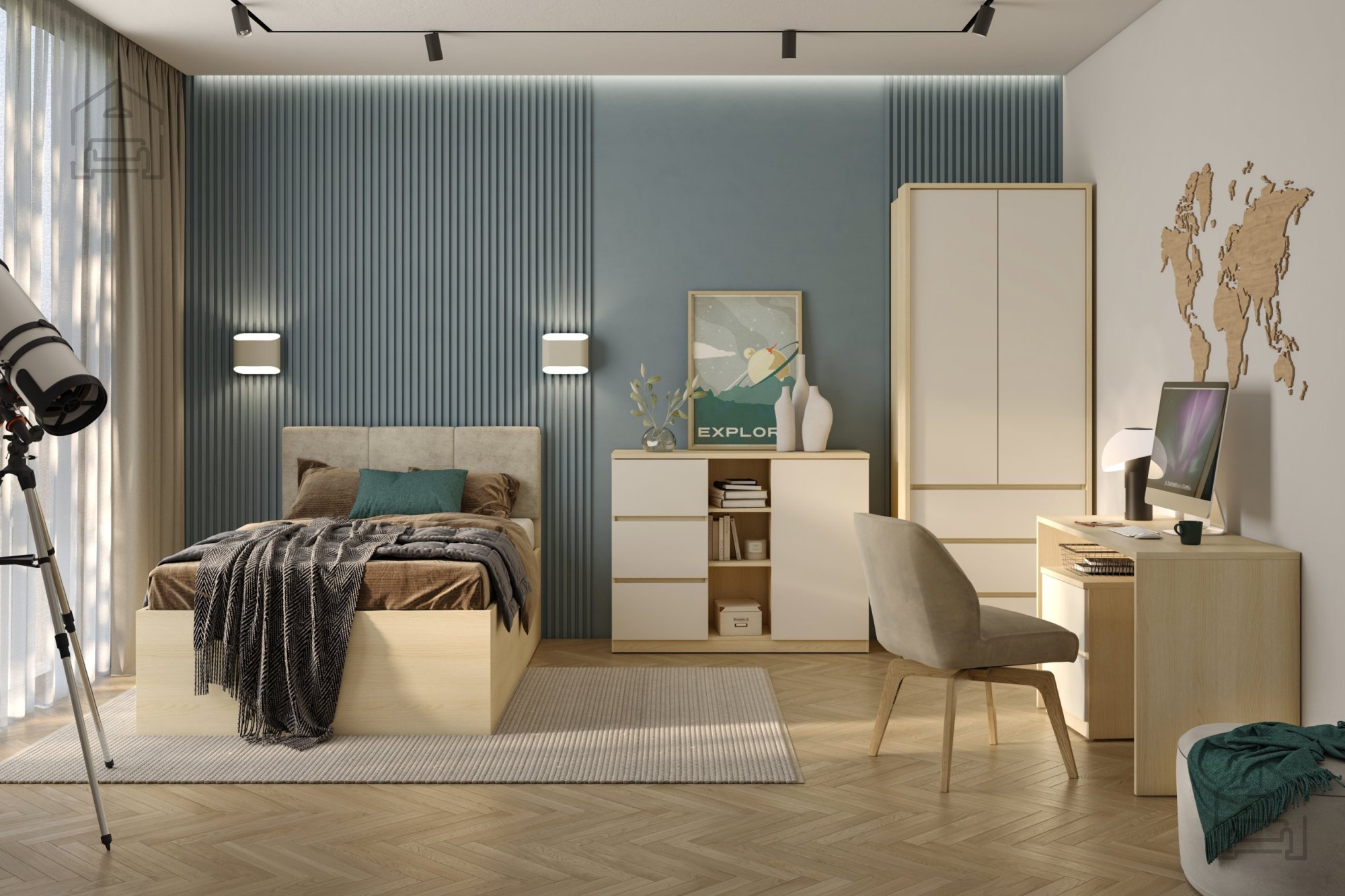 Auch wenn keine genauen Maße angegeben sind, ist die Kollektion Terra modular aufgebaut und kann somit an unterschiedliche Raumgrößen angepasst werden. Einzelne Elemente – wie Kleiderschrank, Bett oder Nachtkästchen – sind farblich und stilistisch aufeinander abgestimmt und ergeben ein stimmiges Gesamtbild. Mit dieser Möbelserie schaffen Sie eine angenehme, harmonische Atmosphäre, die nach einem langen Tag zur Erholung einlädt.