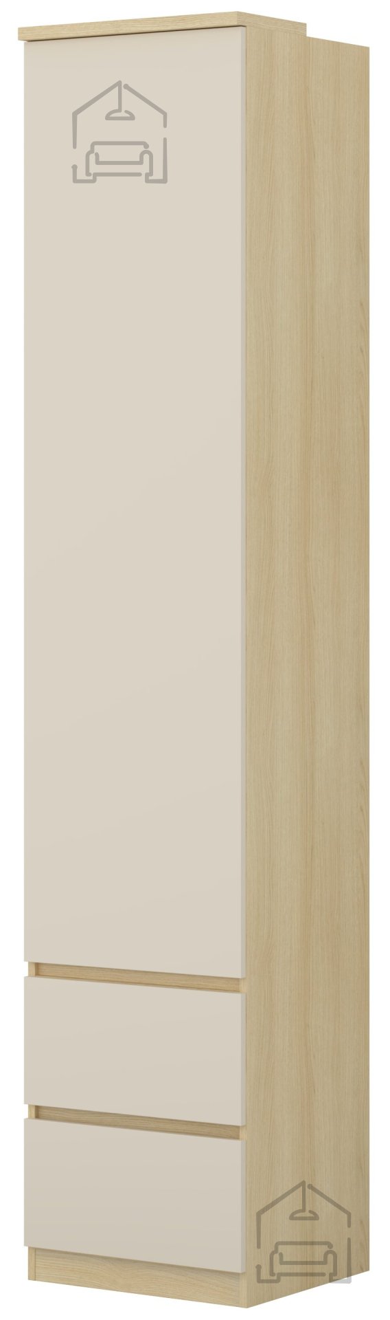 Der Schrank Terra – Helvetia Meble ist ein eleganter, hoher Schrank in einer harmonischen Kombination aus Lindberg-Eiche und einem sanften Beigeton. Mit seinem modernen Design und der hochwertigen Verarbeitung bietet er praktischen Stauraum und sorgt zugleich für eine warme, natürliche Atmosphäre. Die Maße von 45x43x215 cm machen ihn zu einem idealen Möbelstück für Schlafzimmer, Wohnzimmer oder Vorzimmer. Gefertigt aus 15 mm starker, laminierter Spanplatte, deren Kanten durch ABS- und Papierumleimer vor Stößen und Abnutzung geschützt sind.