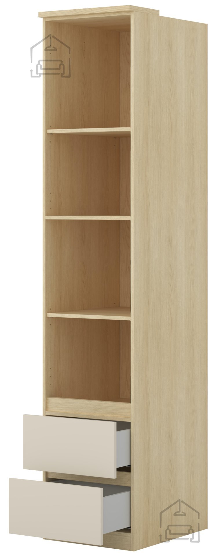 Der Schrank Terra passt hervorragend in moderne Wohnräume, in denen natürliche Materialien und helle Farben dominieren. Durch seine neutrale Farbgestaltung lässt er sich mühelos mit weißen, grauen oder sogar schwarzen Möbeln kombinieren. Er eignet sich für Schlafzimmer, Vorzimmer, Arbeits- oder Jugendzimmer. Dank seiner Höhe bietet er viel Platz für größere Kleidungsstücke, während die kompakte Breite ihn auch für kleinere Räume ideal macht, in denen jeder Zentimeter zählt.