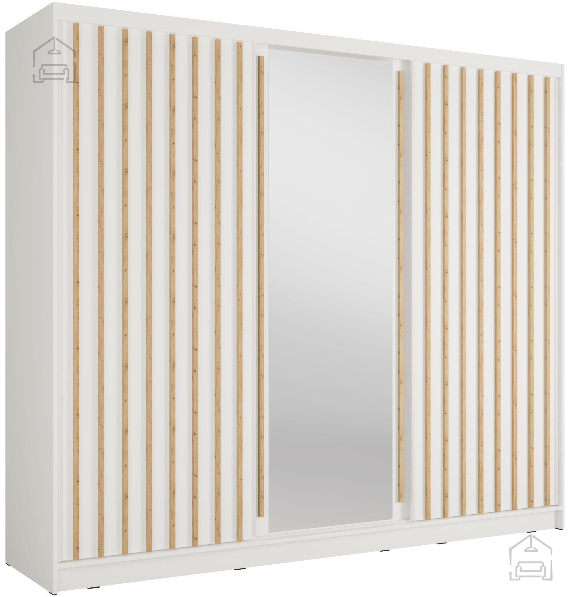 Der Kleiderschrank mit Schiebetüren Aluna 13 – Meblosiek ist eine durchdachte Wahl für alle, die Wert auf Ästhetik, Stauraum und praktische Nutzung legen. Sein klares Design, die funktionale Innenaufteilung und die solide Verarbeitung machen ihn zu einer vielseitigen Lösung für ein gepflegtes Zuhause. Dank seiner Maße und Farbgestaltung fügt er sich sowohl in kleinere Schlafzimmer als auch in größere Ankleideräume harmonisch ein und kann dort als zentrales Möbelstück dienen.