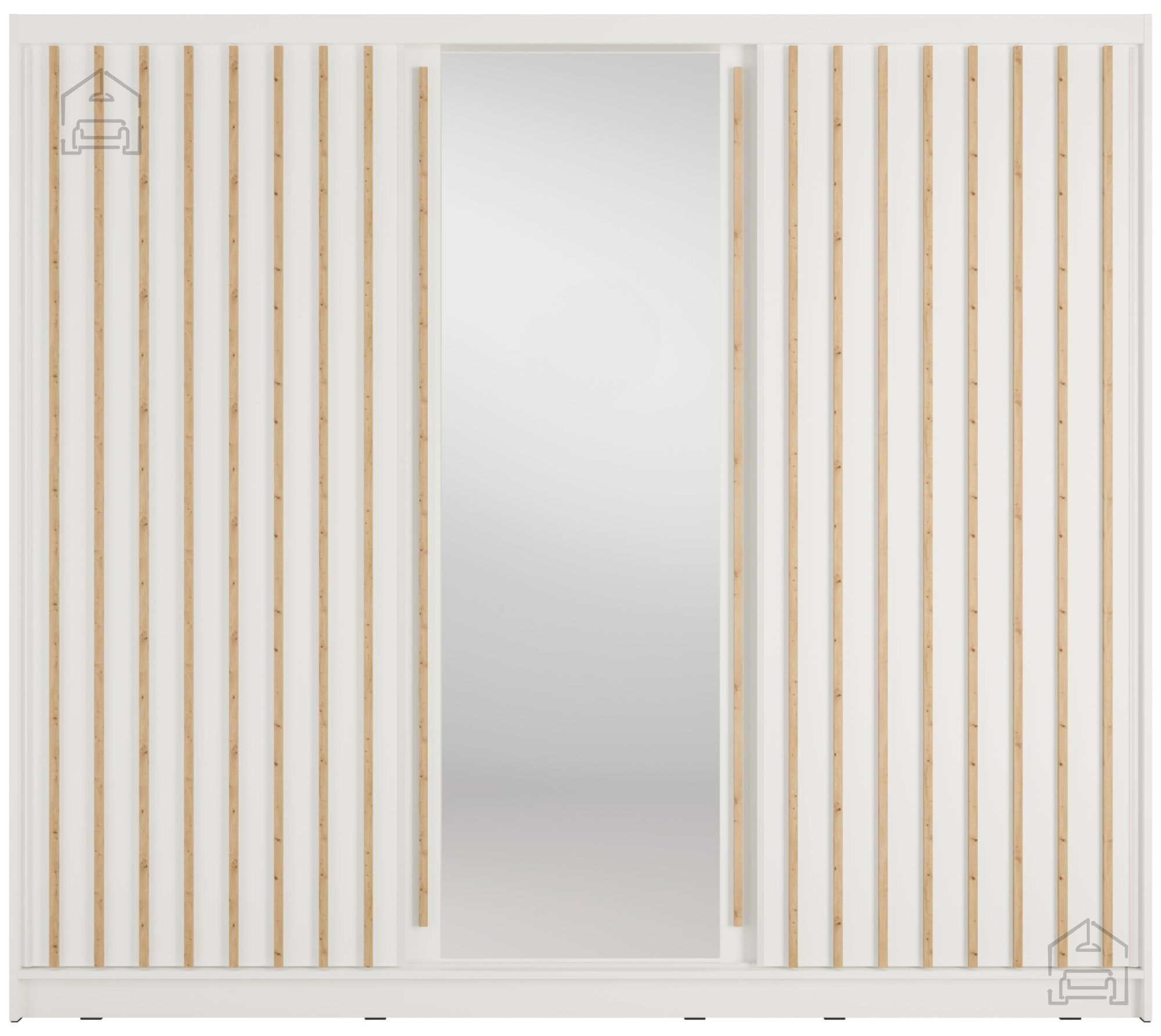 Der Aluna 13 Schrank wurde auf praktische Nutzung und Übersichtlichkeit ausgelegt. Innen befinden sich acht Einlegeböden, die Platz für Kleidung, Bettwäsche oder andere Textilien bieten. Die Schiebetüren sparen Platz, da sie keinen zusätzlichen Raum zum Öffnen benötigen – ideal für kleinere Zimmer. Der Mechanismus ermöglicht ein leichtgängiges und leises Öffnen und Schließen, was den täglichen Gebrauch besonders angenehm macht.