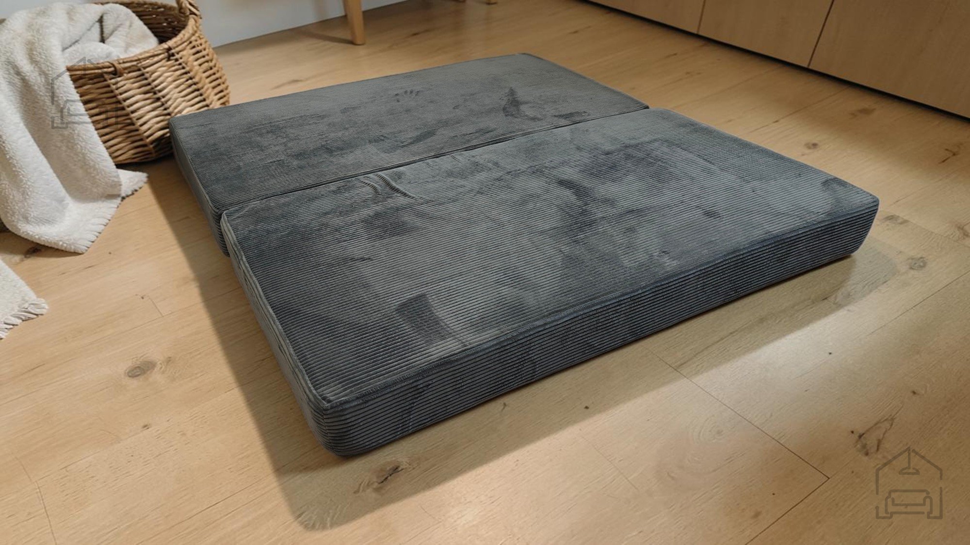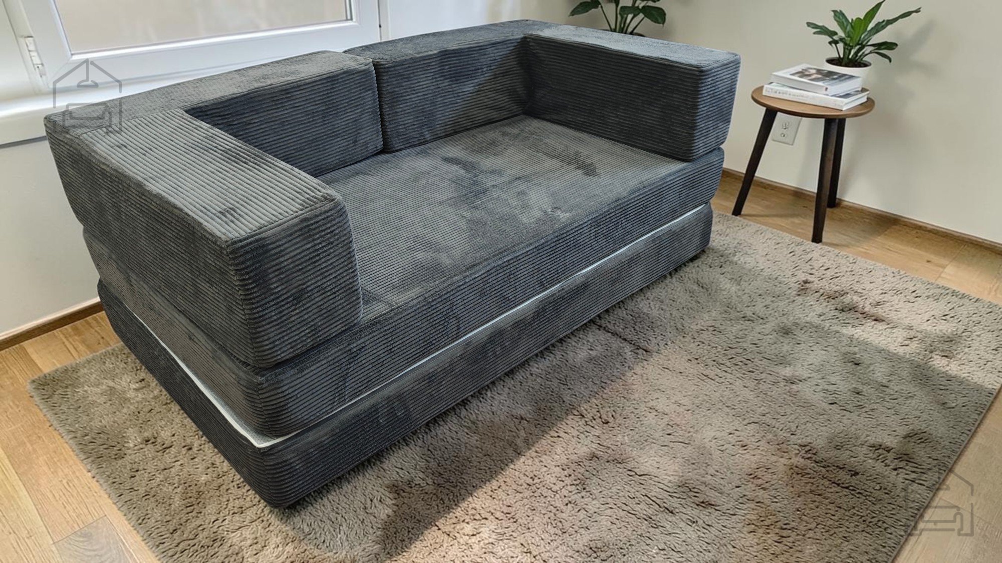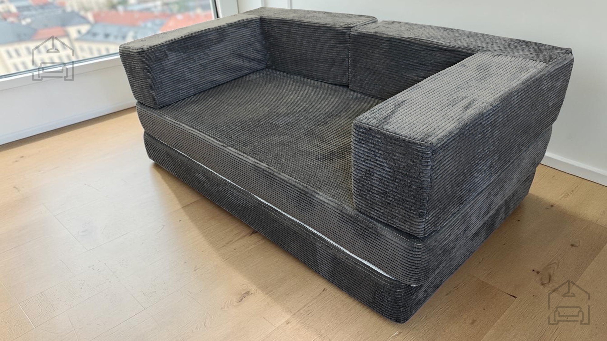 Das Sofa besteht aus hochwertigem Schaumstoff, der angenehme Weichheit und stabile Unterstützung bietet. Der Bezug aus strapazierfähigem Möbelstoff fühlt sich angenehm an und lässt sich leicht reinigen. Nach dem Vakuumverpacken benötigt der Schaumstoff 24–96 Stunden, um sich vollständig auszudehnen – ein ganz normaler Vorgang bei dieser Art von Produkten. Sobald das Material seine Form angenommen hat, ist das Sofa bereit für den täglichen Gebrauch.