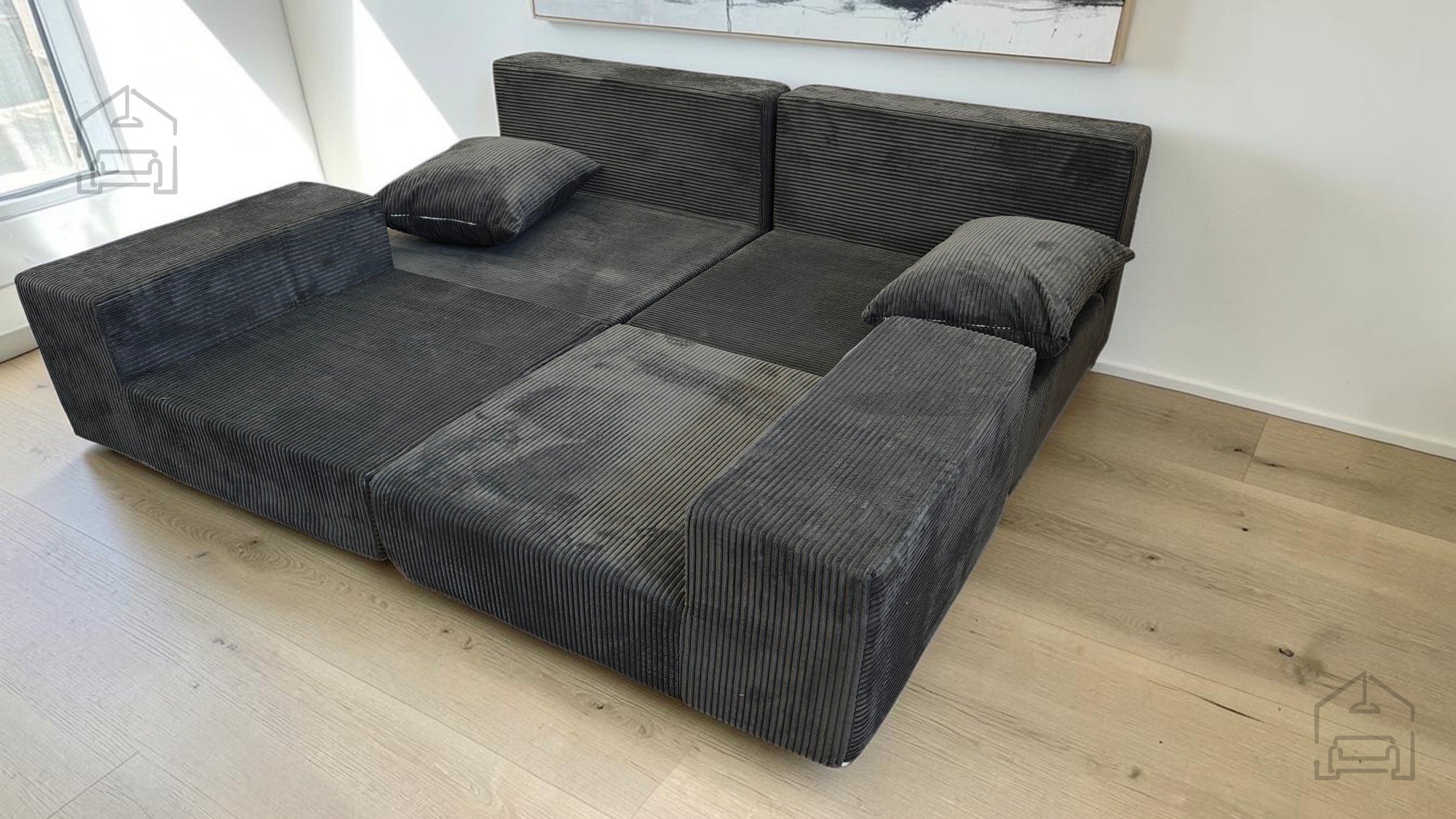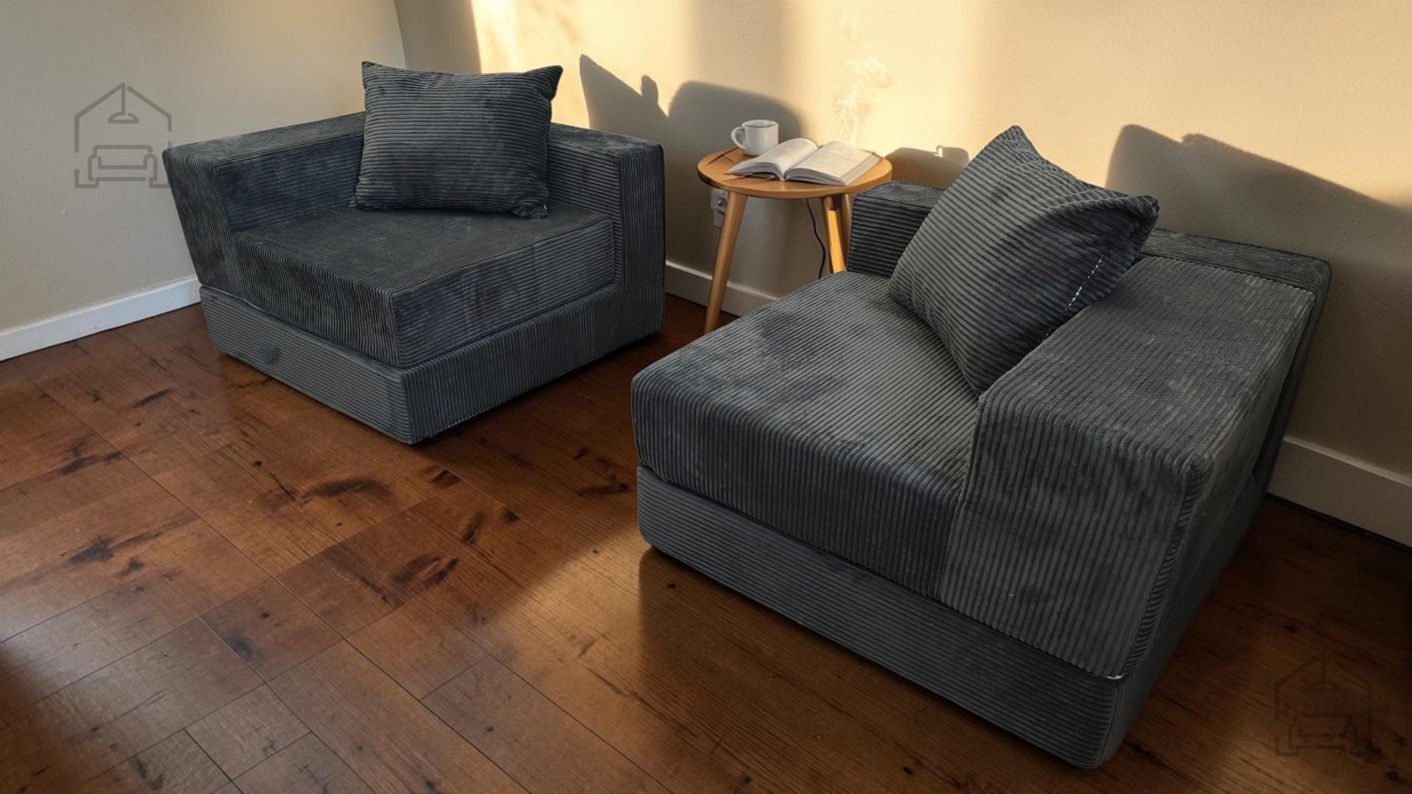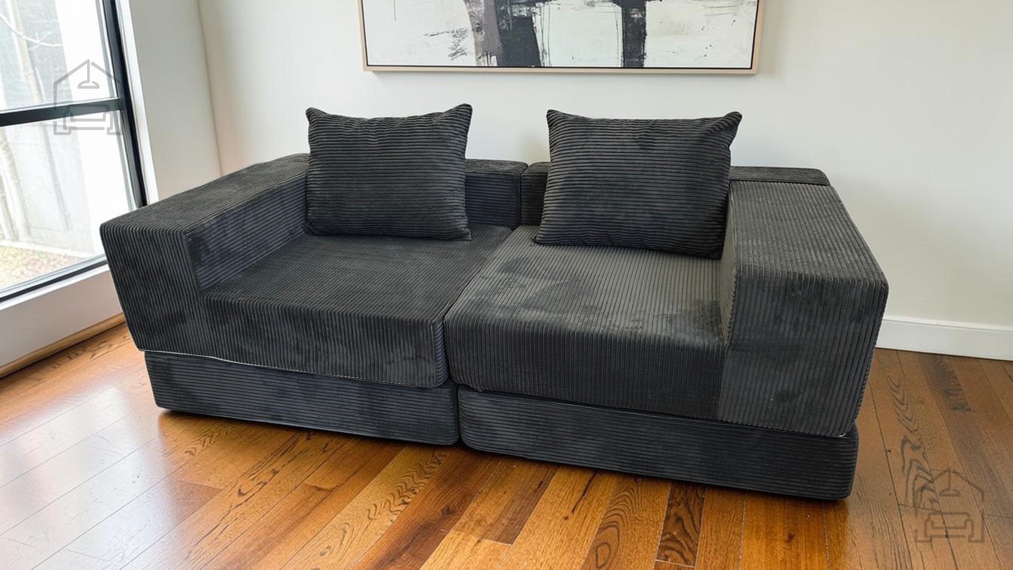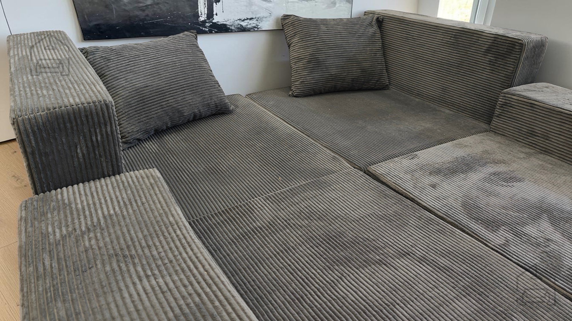 Das Sofa besteht aus hochwertigem Schaumstoff, der angenehme Weichheit und guten Halt bietet. Der Bezug ist aus strapazierfähigem Möbelstoff gefertigt, fühlt sich angenehm an und lässt sich leicht reinigen. Nach dem Vakuumverpacken entfaltet sich der Schaumstoff innerhalb von 24 bis 96 Stunden vollständig – ein normaler Vorgang bei dieser Art von Produkt. Sobald sich das Material ausgedehnt hat, erreicht das Sofa seine endgültige Form und Größe und ist bereit für den täglichen Gebrauch.
