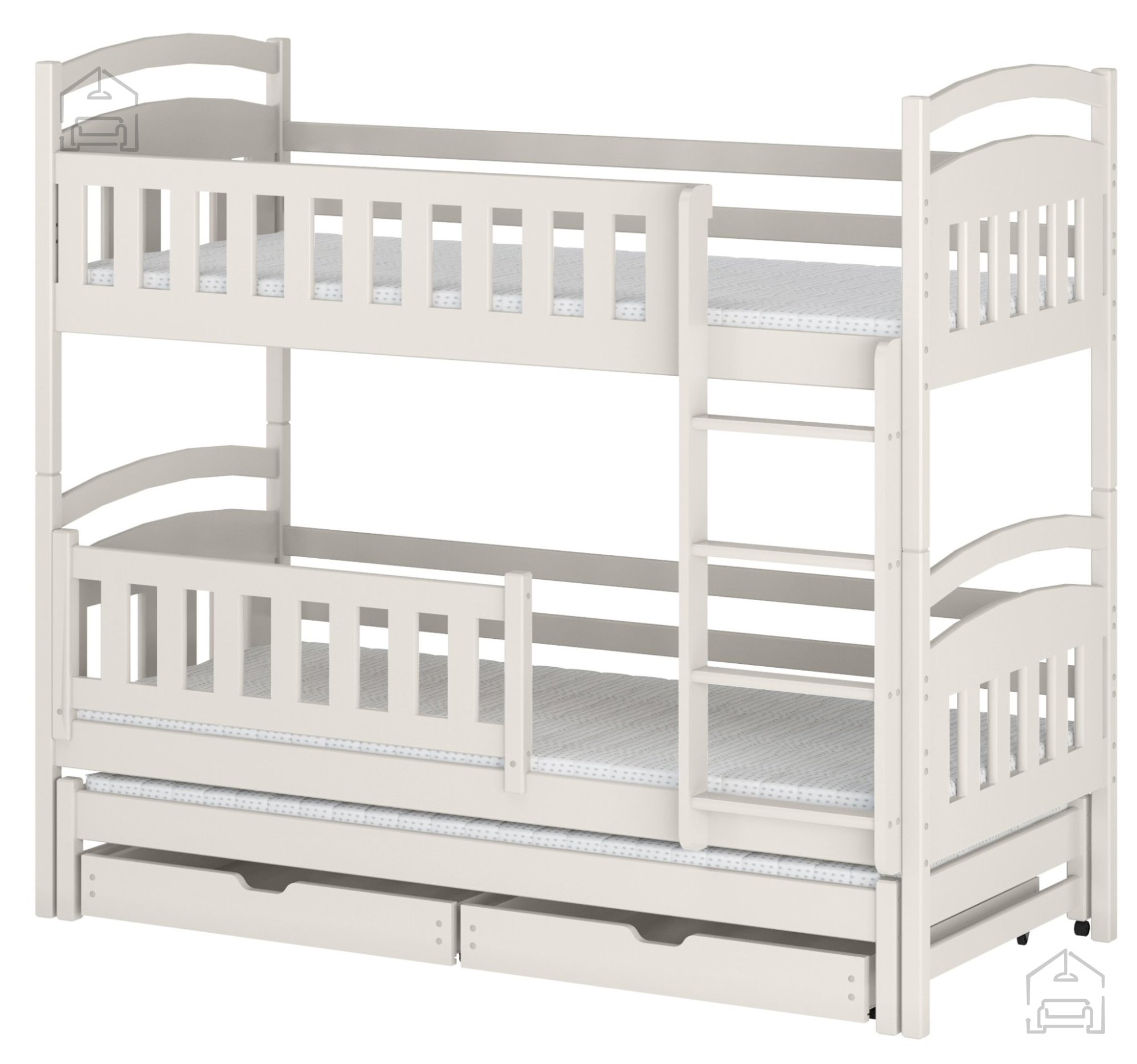 Das Etagenbett Blanka – Lano vereint hochwertige Materialien, durchdachtes Design und Sicherheit. Die stabile Konstruktion aus Kiefernholz sorgt für dauerhafte Standfestigkeit, während die praktische Lade zusätzlichen Stauraum bietet. Dank seiner schlichten Farbgebung passt es sowohl in Mädchen- als auch in Jungenzimmer. Mit dem Etagenbett Blanka wird das Schlafen angenehm und das Zimmer stets aufgeräumt und gemütlich wirken.