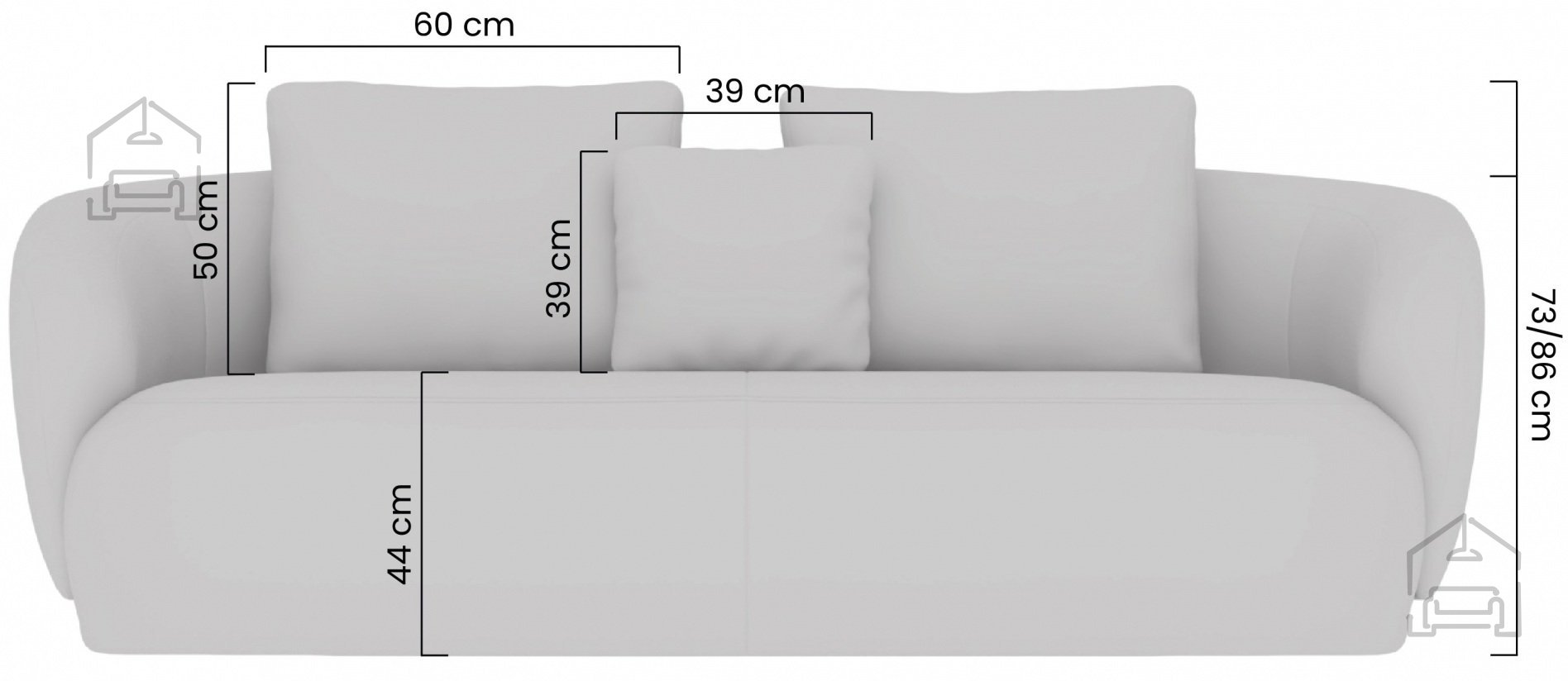 Im Inneren des Sofas Finezal sorgt eine Kombination aus Polyurethanschaum T18 und Taschenfedern (Pocket Springs) für optimalen Sitzkomfort und stabile Unterstützung. Diese Konstruktion verhindert ein schnelles Einsinken und behält auch nach längerem Gebrauch ihre Elastizität. Die Sitzhöhe von 44 cm ermöglicht ein natürliches, entspanntes Sitzen – ideal für den täglichen Gebrauch. Auch die Rückenlehne ist mit hochwertigem Schaum gepolstert und bietet angenehmen Halt.