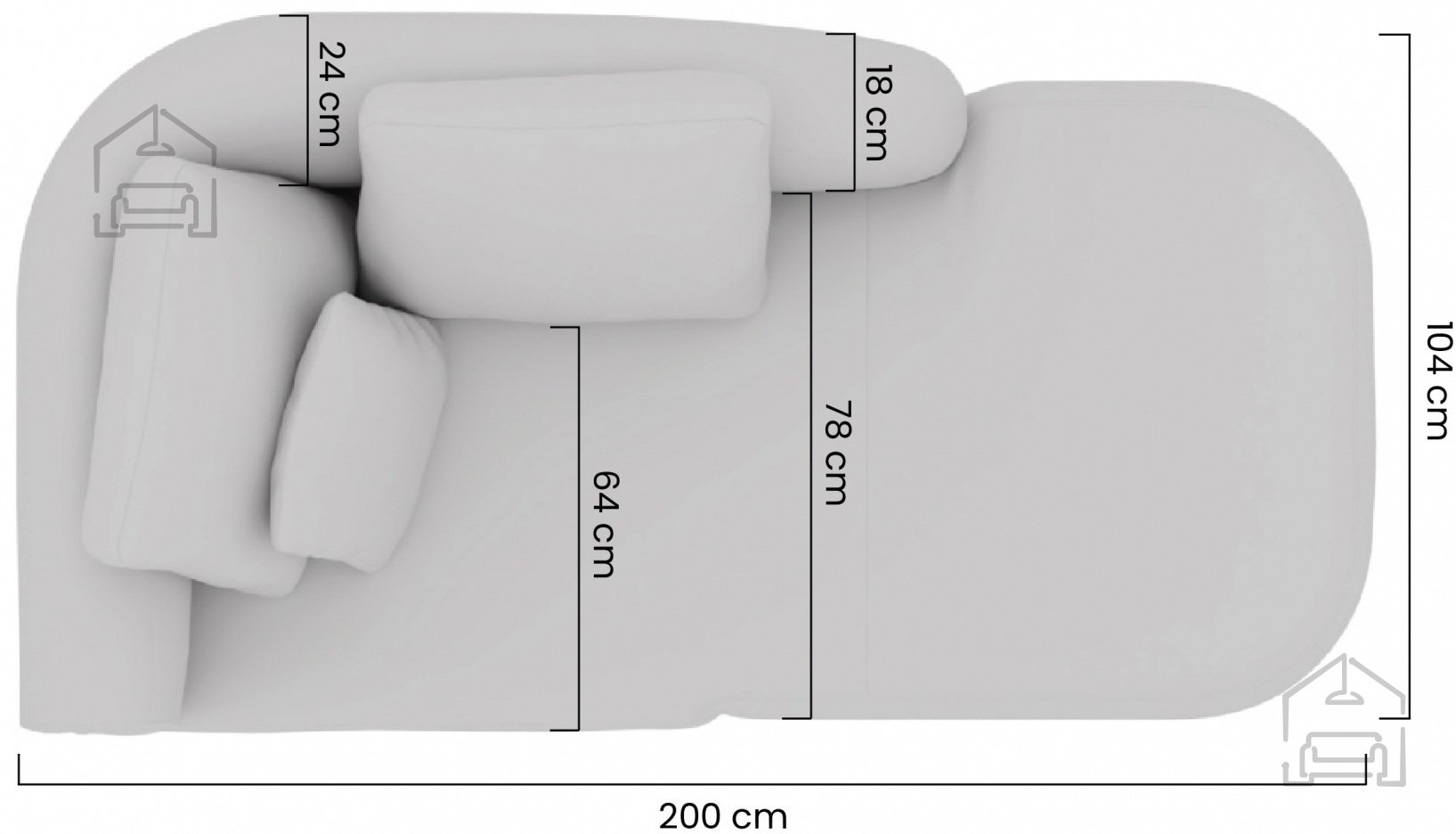 Die Füße bestehen aus schwarzem Kunststoff, was dem Möbelstück ein modernes Aussehen verleiht und das Verschieben der Elemente erleichtert. Dennoch bleibt die Konstruktion stabil, da jedes Modul eine maximale Belastung von 150 kg pro Person trägt. Dank der modularen Bauweise können mehrere Elemente verbunden werden, um individuelle Layouts je nach Raumgröße und persönlichem Geschmack zu gestalten.