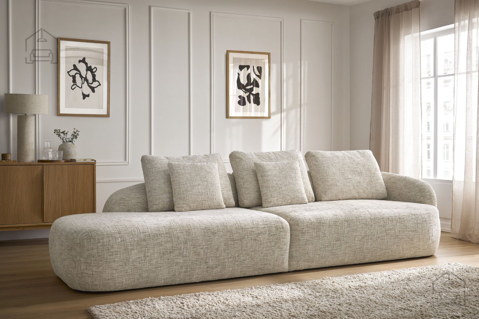 Der Stil des Finezal-Systems ist modern und passt dadurch hervorragend zu unterschiedlichen Einrichtungsstilen – von minimalistisch bis klassisch. Das Produkt ist in mehreren Farbvarianten erhältlich und lässt sich dadurch leicht mit anderen Möbeln und Accessoires kombinieren. Der Bezug aus hochwertigem Stoff fühlt sich angenehm an und ist zugleich pflegeleicht. Die feine Stoffstruktur verleiht dem Raum Wärme und Behaglichkeit, ohne dabei an Eleganz zu verlieren.
