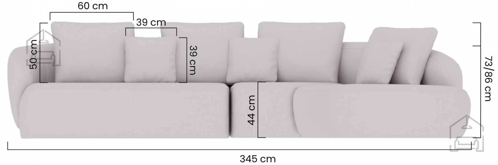 Das modulare System Finezal hat eine Sitzhöhe von 44 cm, was bequemes Sitzen und Aufstehen ermöglicht. Durch das durchdachte Design eignet es sich sowohl für Wohnräume als auch für großzügige, offene Bereiche, in denen einzelne Module ganz nach Bedarf kombiniert werden können. Die Konstruktion ist nicht mit einem Ausziehmechanismus ausgestattet, daher ist das System in erster Linie zum Sitzen und Entspannen gedacht. Es verfügt auch über keinen Bettkasten und kein Lattenrost, was seine Funktion als Sitzmöbel und nicht als Schlafgelegenheit unterstreicht.