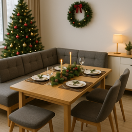 Es gibt Esszimmer, in die man hineingeht und sofort spürt: Hier bleibt man gerne länger sitzen. Nicht, weil die Servietten perfekt gefaltet sind, sondern weil Tisch, Stühle und Eckbank eine Einheit bilden. Genau dieses Gefühl wird an Weihnachten besonders wichtig – wenn die Runde größer wird und der Abend sich von selbst in die Länge zieht.